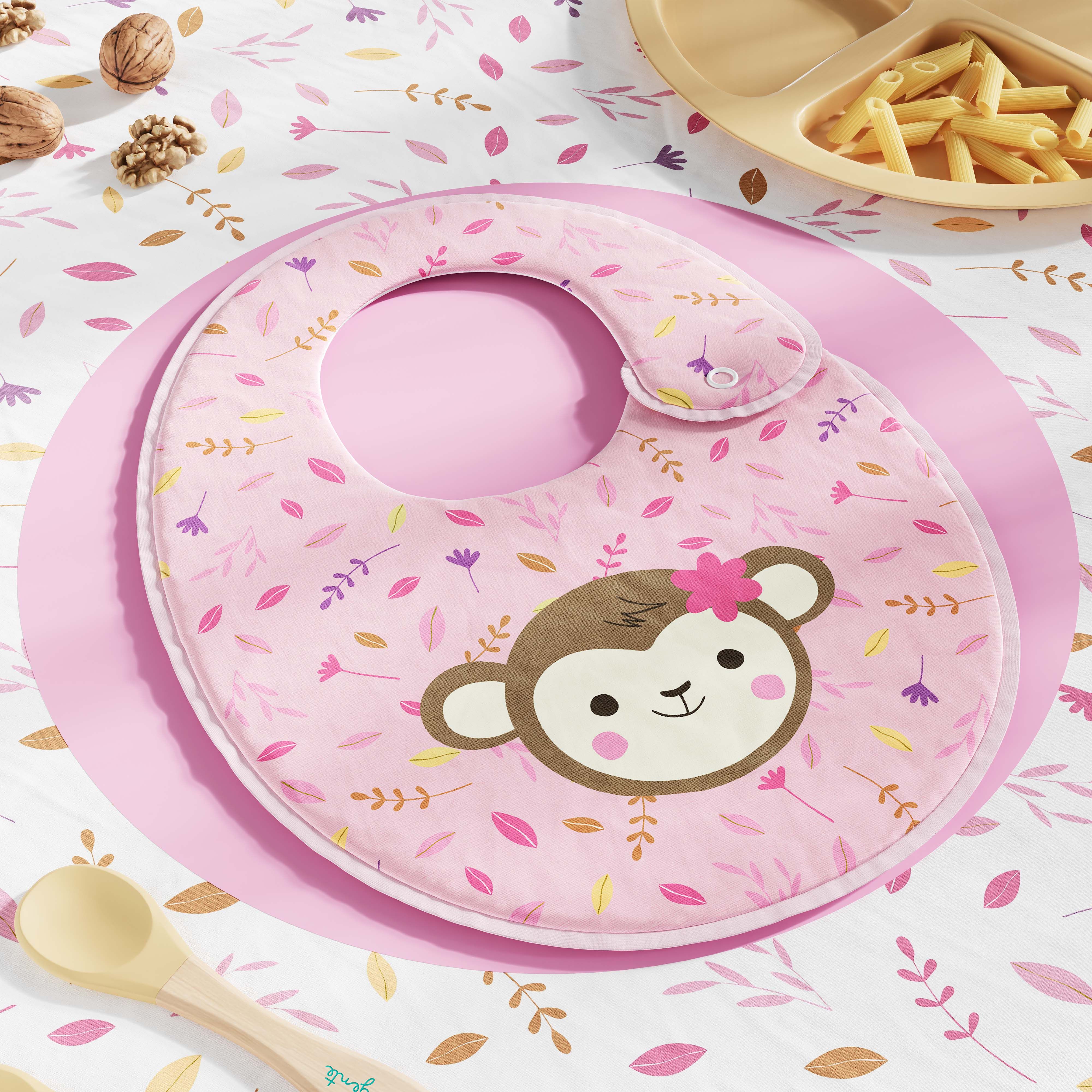 O Babador Macaquinha Selva Baby Rosa é uma criação exclusiva da Grão de Gente para completar o enxoval do bebê dos sonhos!