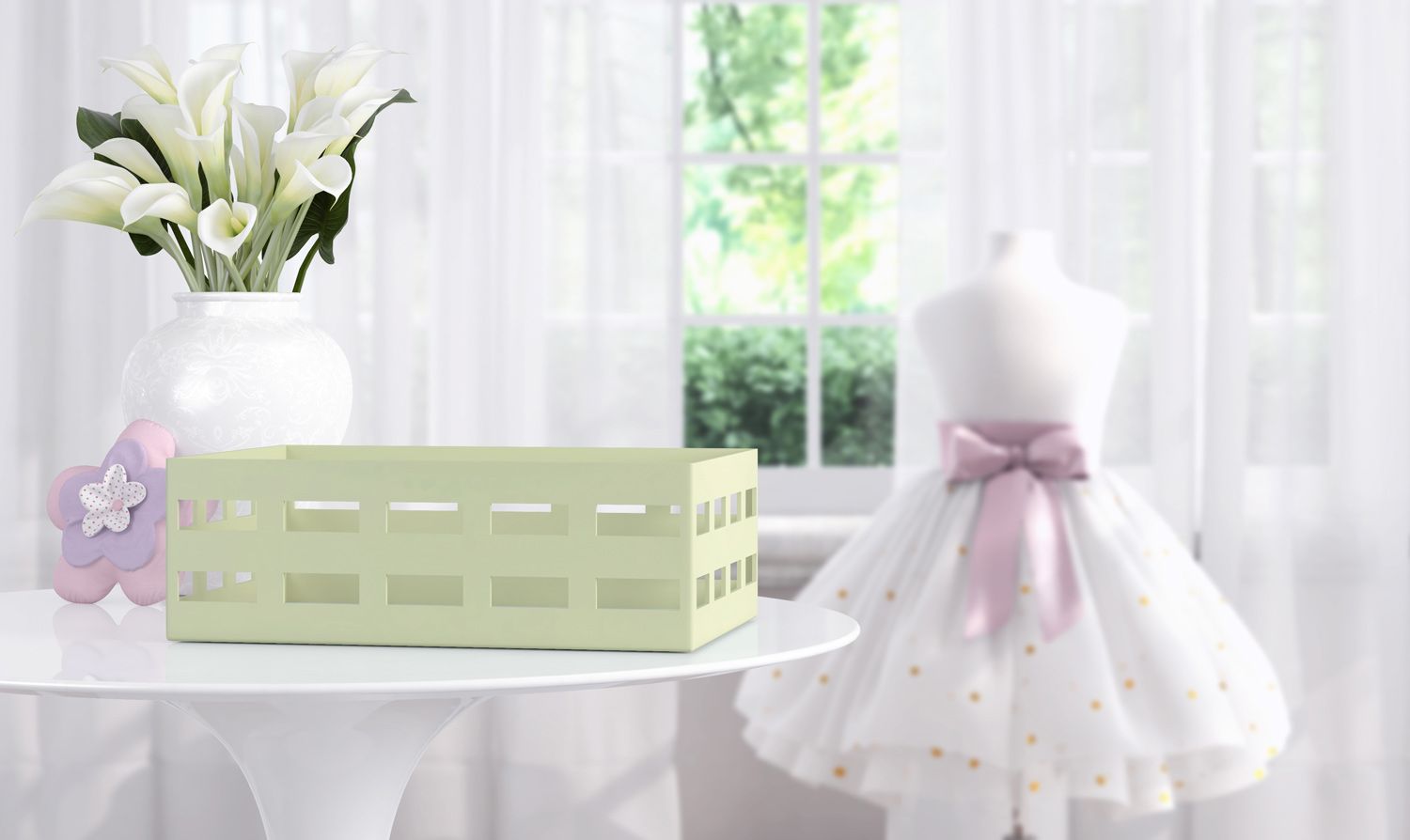 Manter organizado os medicamentos e itens de higiene das princesas é um desejo de todas as mamães e papais. A Bandeja Floral Monet foi desenvolvida exatamente para isso, com ela fica mais fácil guardar direitinho as pomadas, remedinhos, lencinhos e até moringas. A cor verde é suave e sua estrutura de madeira 100% MDF reforça sua qualidade. Seu design é bastante delicado e gracioso, assim como toda essa coleção encantadora!