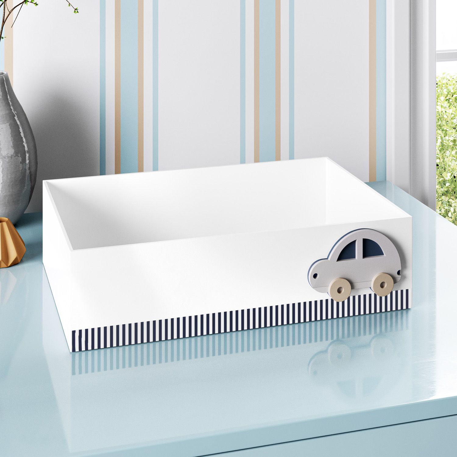 A Bandeja MDF Carrinho Azul é uma linda opção para organizar e decorar o cantinho da troca de fraldas e o quarto de bebê. Você pode guardar potes, fraldinhas, pequenos brinquedos e medicamentos. O diferencial dessa peça exclusiva fica por conta do carrinho e da faixa de tecido listrado aplicados na parte da frente.