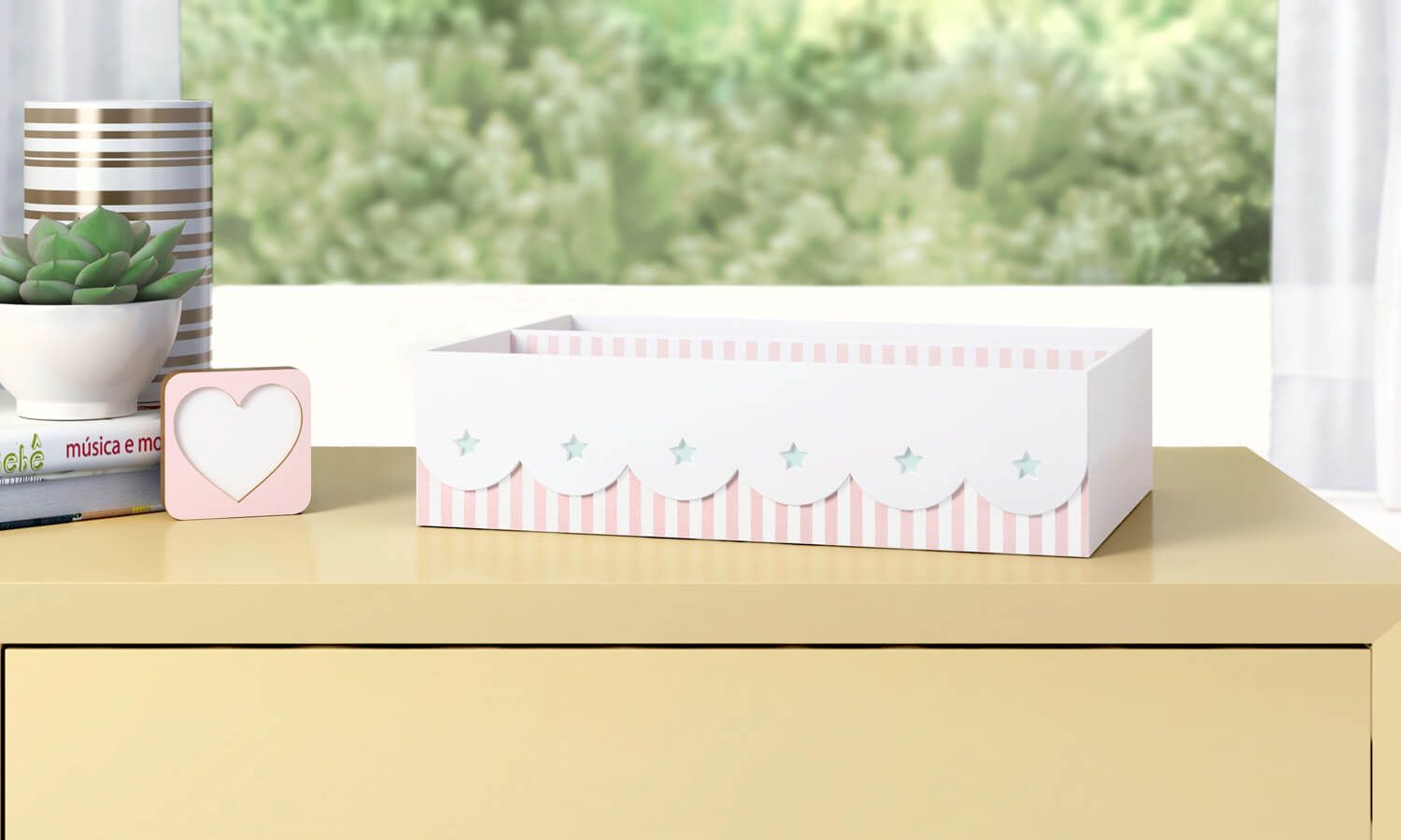 Para a organização do quarto de bebê e funcionalidade no seu dia a dia, a Bandeja MDF Listrada com Estrelinhas da Linha Sabrina Sato Mom é a melhor alternativa! Com listras nas cores rosé e branco, essa bandeja confeccionada em madeira 100% MDF e acabamento em tecido é sinônimo de praticidade nos cuidados com a higiene da neném. Seu design conta com delicadas estrelinhas que trazem ainda mais charme para a decoração do quarto de bebê!