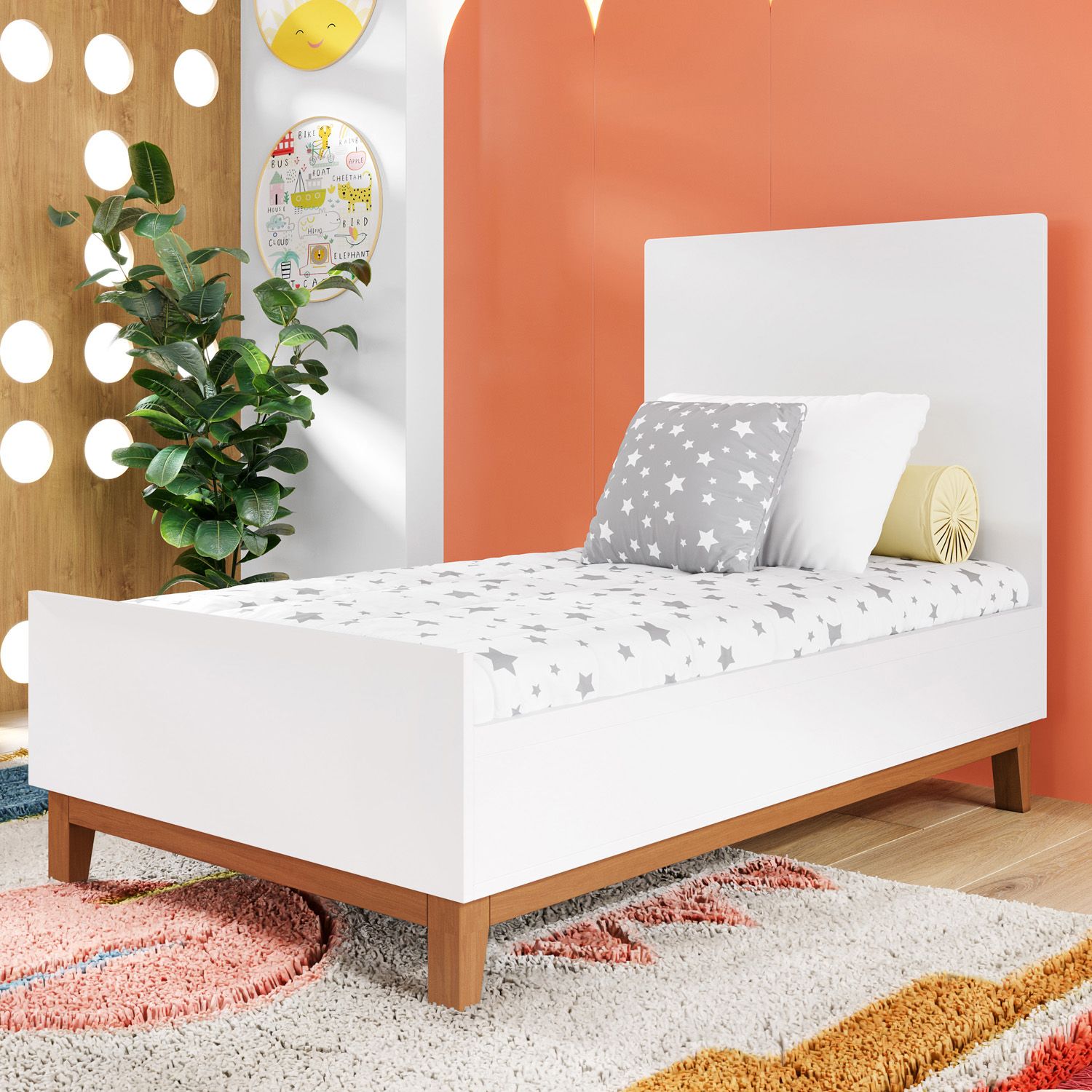 Influência do estilo escandinavo para o quarto de bebê, o Berço Americano Branco Nordic traz uma proposta contemporânea para o ambiente. Leveza, design impecável e acabamento minimalista celebram o melhor desse conceito moderno, na qual o móvel, além de beleza, traz funcionalidade ao ambiente. Afinal, acompanha o crescimento do bebê, pois se transforma numa graciosa mini cama. Confira todos os detalhes: