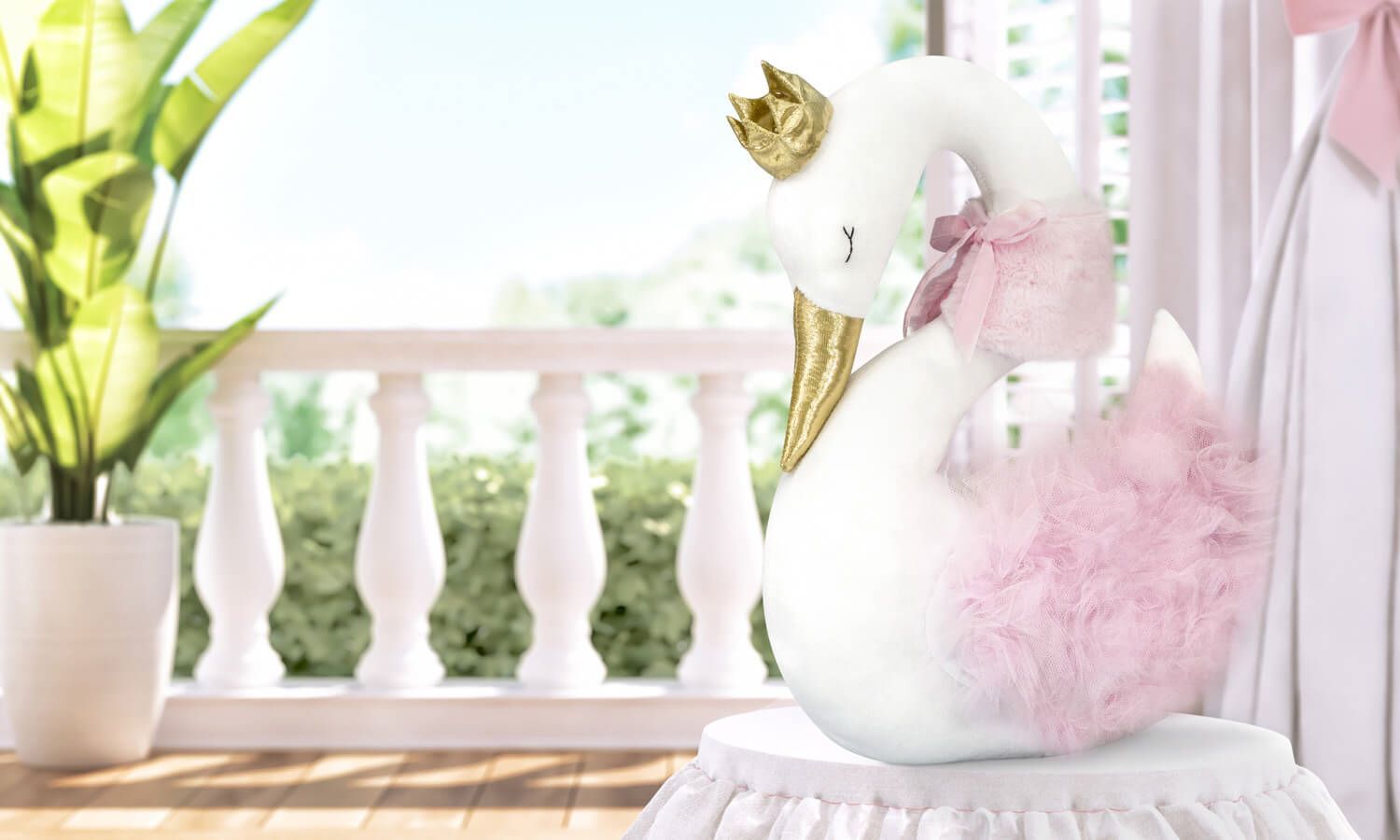 Bichinho de Pelúcia Cisne Branco e Rosa 45cm