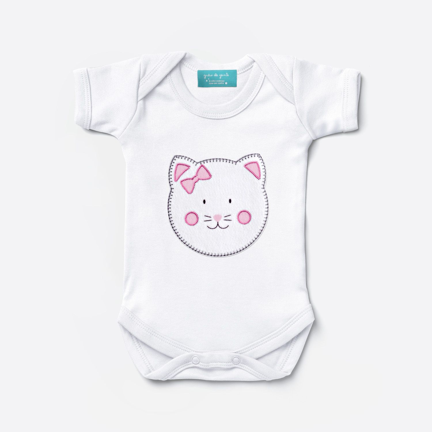 Sua menina merece esse conforto! O Body Manga Curta Amiguinha Gatinha é uma exclusividade da Grão de Gente, pensada especialmente para bebês. É uma peça macia e confortável, feita de malha 100% algodão, para tornar o dia da sua pequena mais alegre e cheio de estilo. O aplique de gatinha com lacinho é uma gracinha!