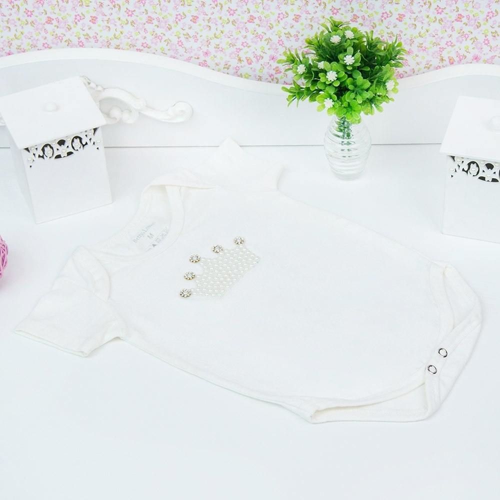 Body Manga Curta Coroa com Pérolas Palha 6 a 9 Meses