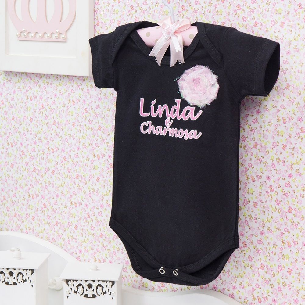 Body Manga Curta Linda e Charmosa Preto 12 a 15 Meses