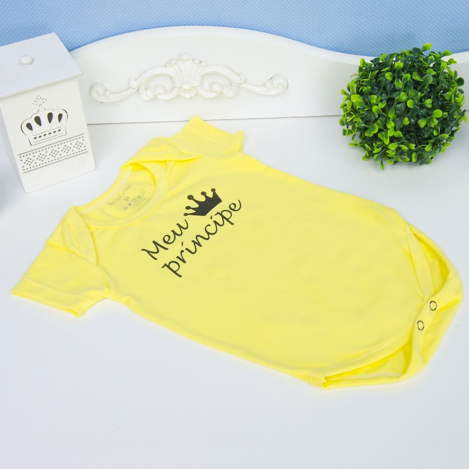 Body Manga Curta Meu Príncipe Amarelo 12 a 15 meses
