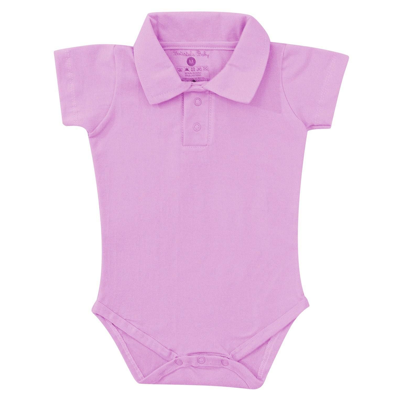Body Manga Curta Polo Lilás 6 a 9 Meses