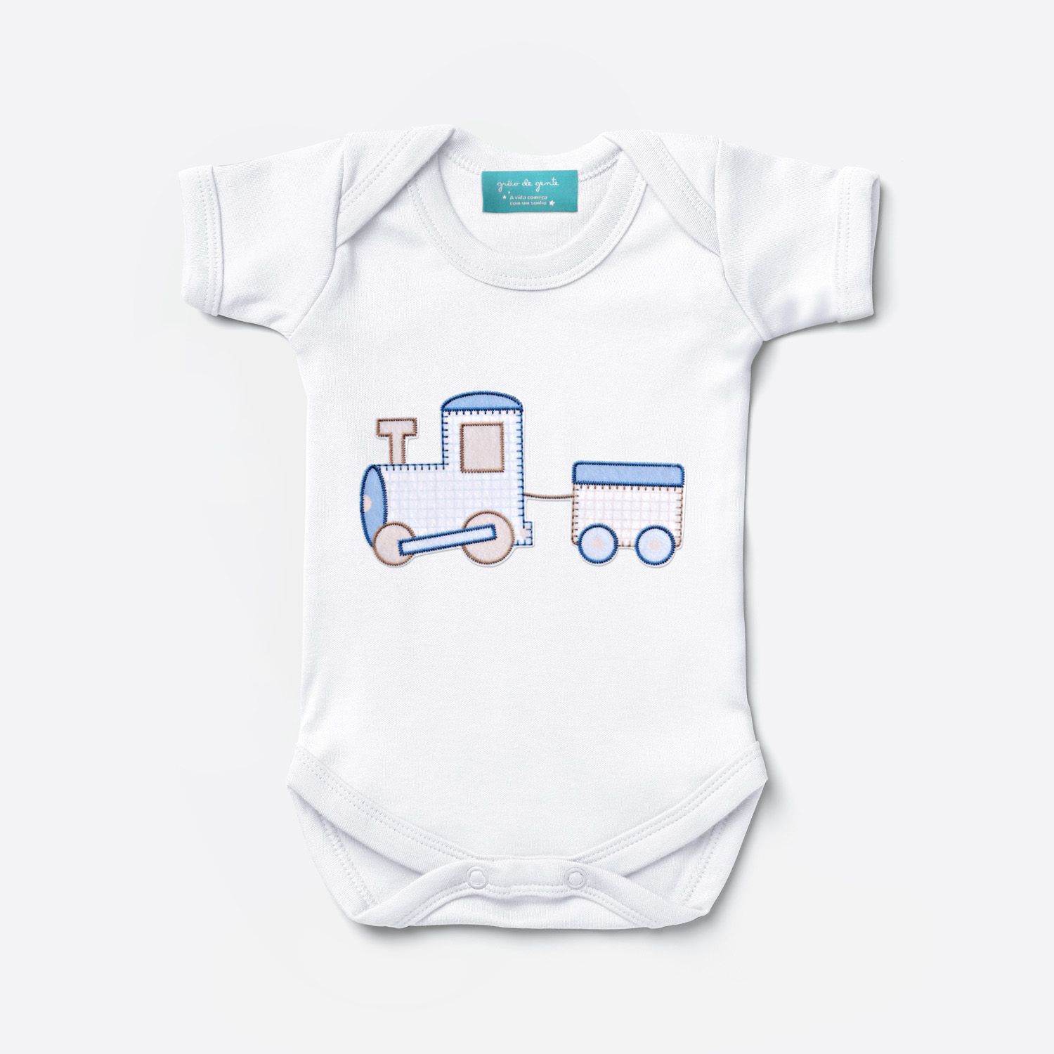Seu bebê merece esse conforto! O Body Manga Curta Trenzinho Bege e Azul é uma exclusividade da Grão de Gente, pensada especialmente para os pequenos. É uma peça macia e confortável, feita de malha 100% algodão, para tornar o dia do seu pequeno mais alegre e cheio de estilo.