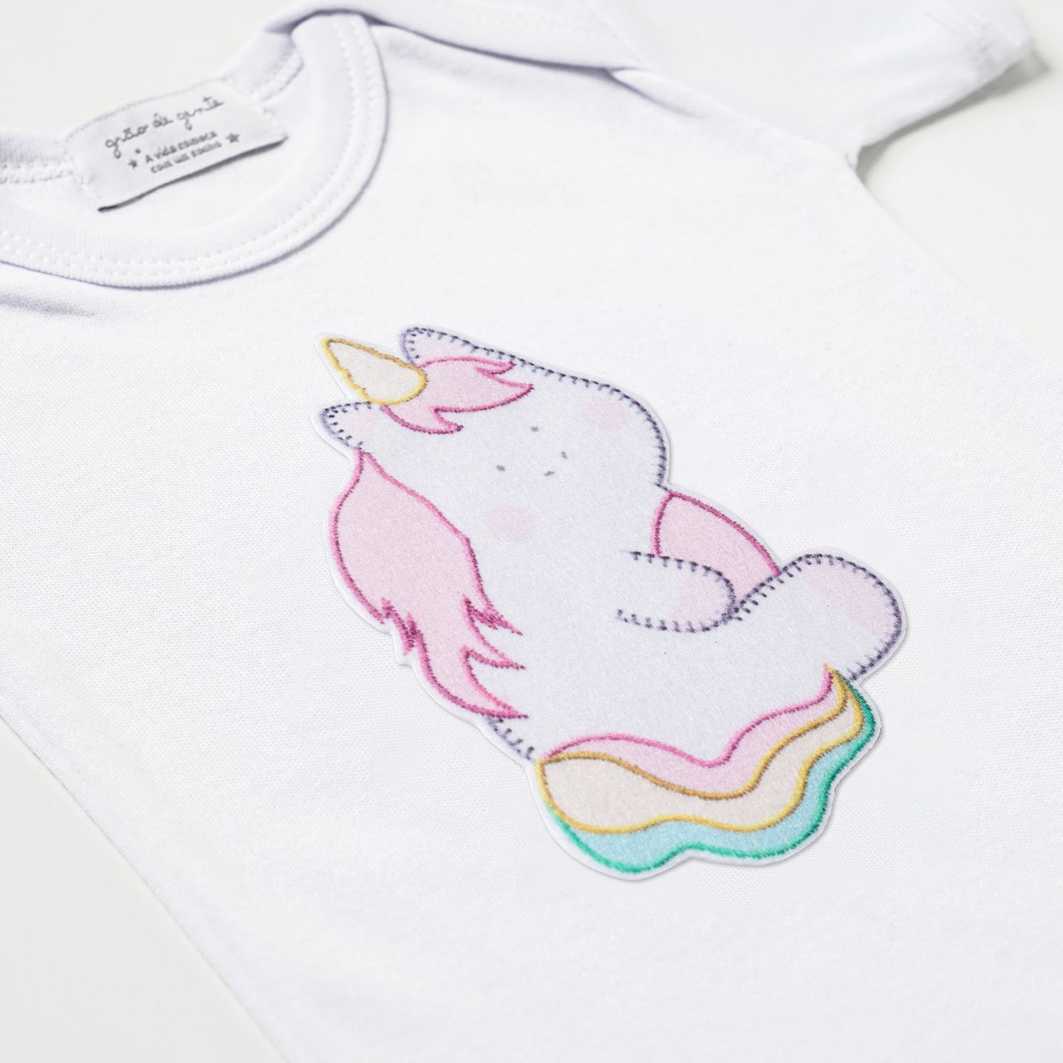 Body Manga Curta Unicórnio Arco-íris Colorido Tam P