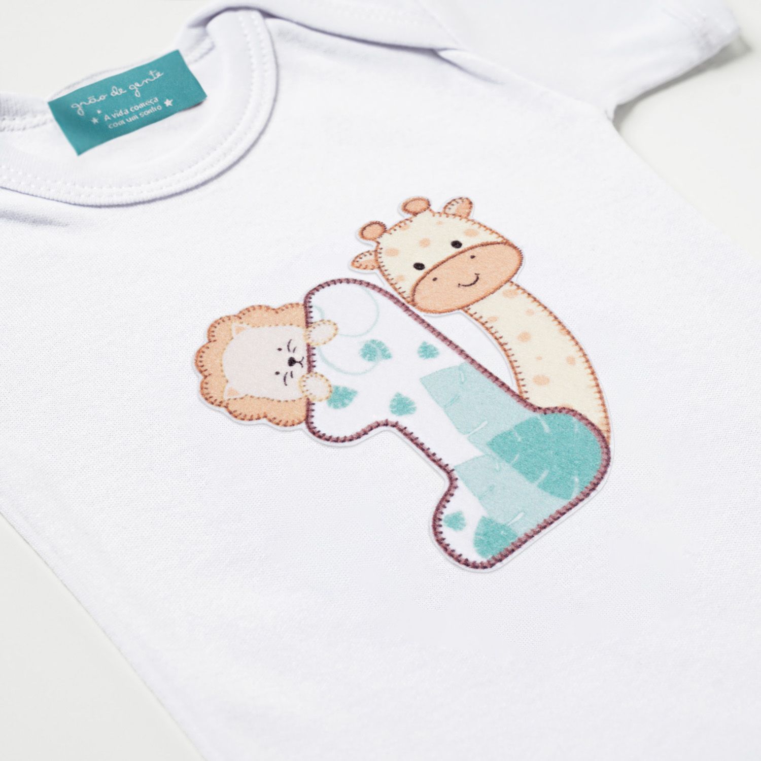 Para comemorar os primeiros meses de vida do seu amor com muita fofura! O Body Manga Curta Mesversário Amiguinhos Safári 1 Mês é uma exclusividade da Grão de Gente, pensada especialmente para acompanhar o crescimento do bebê. É uma peça macia e confortável, feita de malha 100% algodão, para tornar as comemorações com mais delicadeza e alegria. A estampa sublimada em alta definição é uma graça!