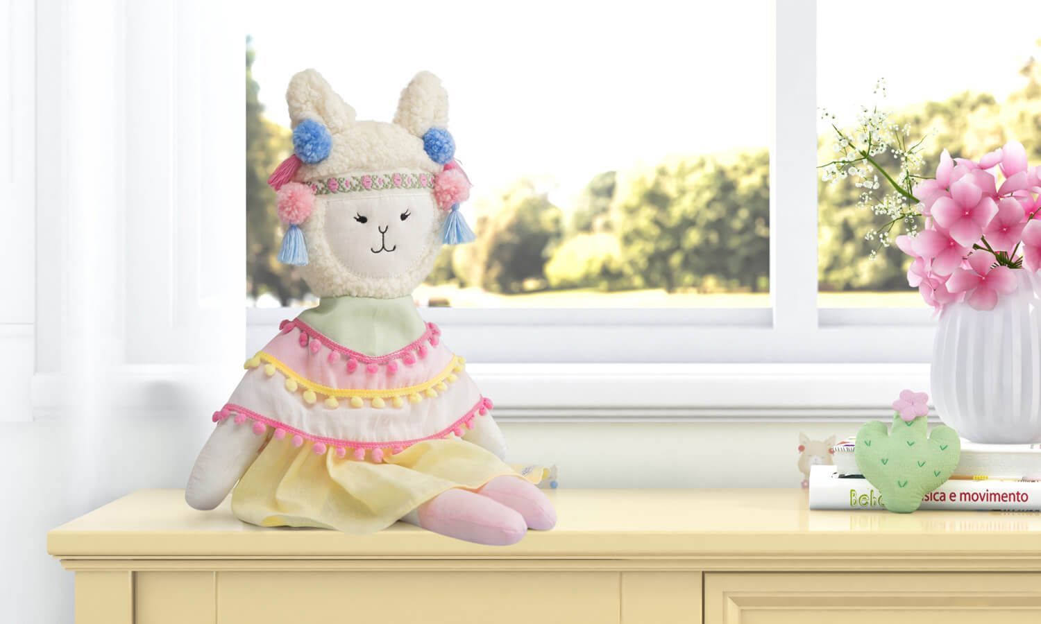 Diversão garantida! Além de compor um ambiente lúdico com criatividade e aconchego, a Boneca Lhama Mimo 48cm aparece para completar a decoração do quarto de bebê com uma proposta super moderninha. Com uma parte confeccionada com a maciez da pelúcia carapinha combinada a pompons, fita florida e delicadas franjinhas, compõem o visual temático dessa fofura! O rostinho bordado à mão finaliza com elegância nossa boneca de pano repleta de detalhes. Ótima companhia para brincar e tornar o décor mais afetivo, além de proporcionar momentos especiais para o seu amor.