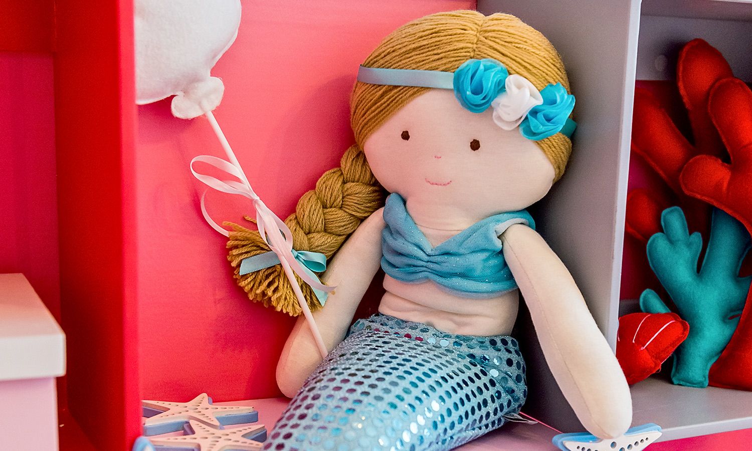 Boneca Sereia Mimo Azul 48cm