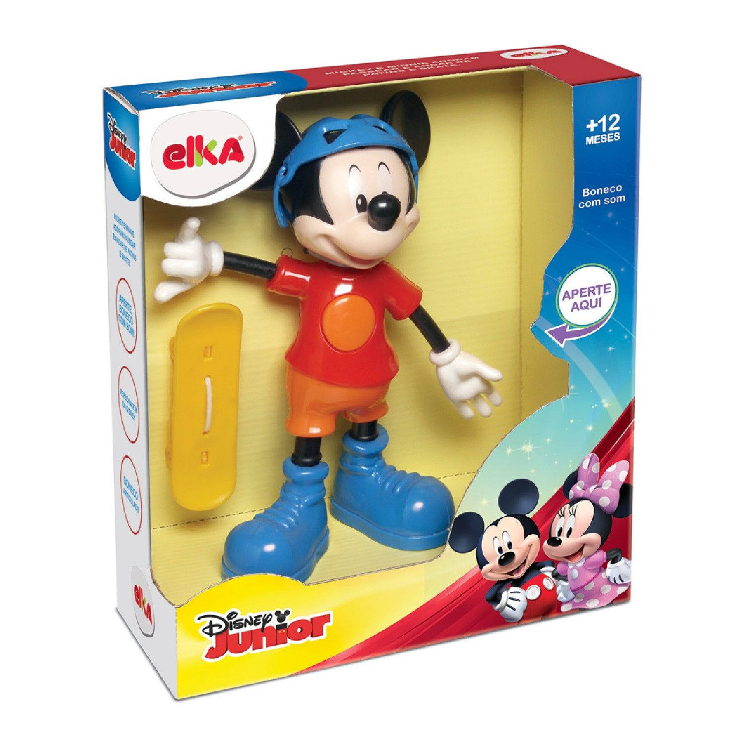 Além do seu visual radical que acompanha um skate, o boneco possui um botão em sua camisa que, quando apertado, acende uma luz e emite som com diferentes histórias, com uma voz que remete à do ratinho mais amado da Disney, deixando a brincadeira muito mais divertida para os pequenos.