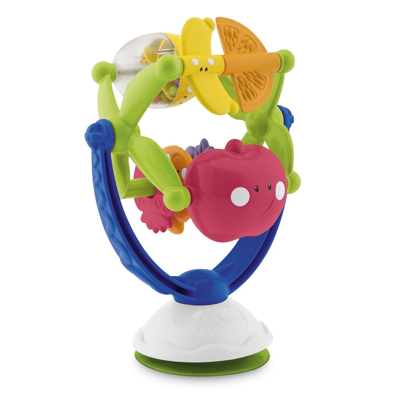 A Brinquedo Educativo Roda Gigante das Frutas Chicco é um ótimo brinquedinho para a hora do papa, ela possui uma ventosa em sua base que pode ser fixada na cadeirinha alimentação do seu bebê sem o risco de cair enquanto ele se diverte. Além do mais as frutinhas com cores, formatos e texturas diferentes estimulam a coordenação motora manual da criança.