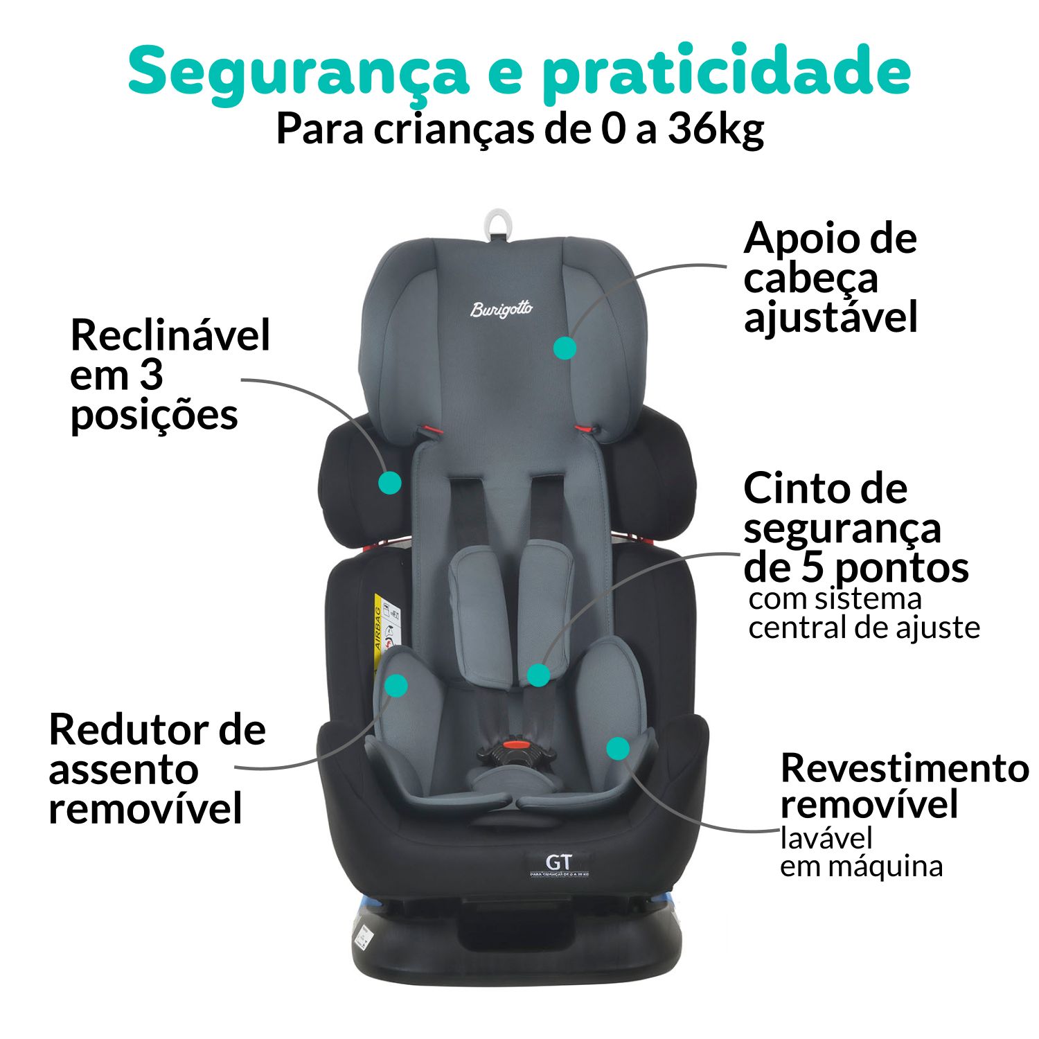 A Cadeirinha de Carro GT 0-36kg Black Burigotto é perfeita para os momentos de passeio de carro da família. Seu diferencial é ter o maior ajuste da altura do apoio de