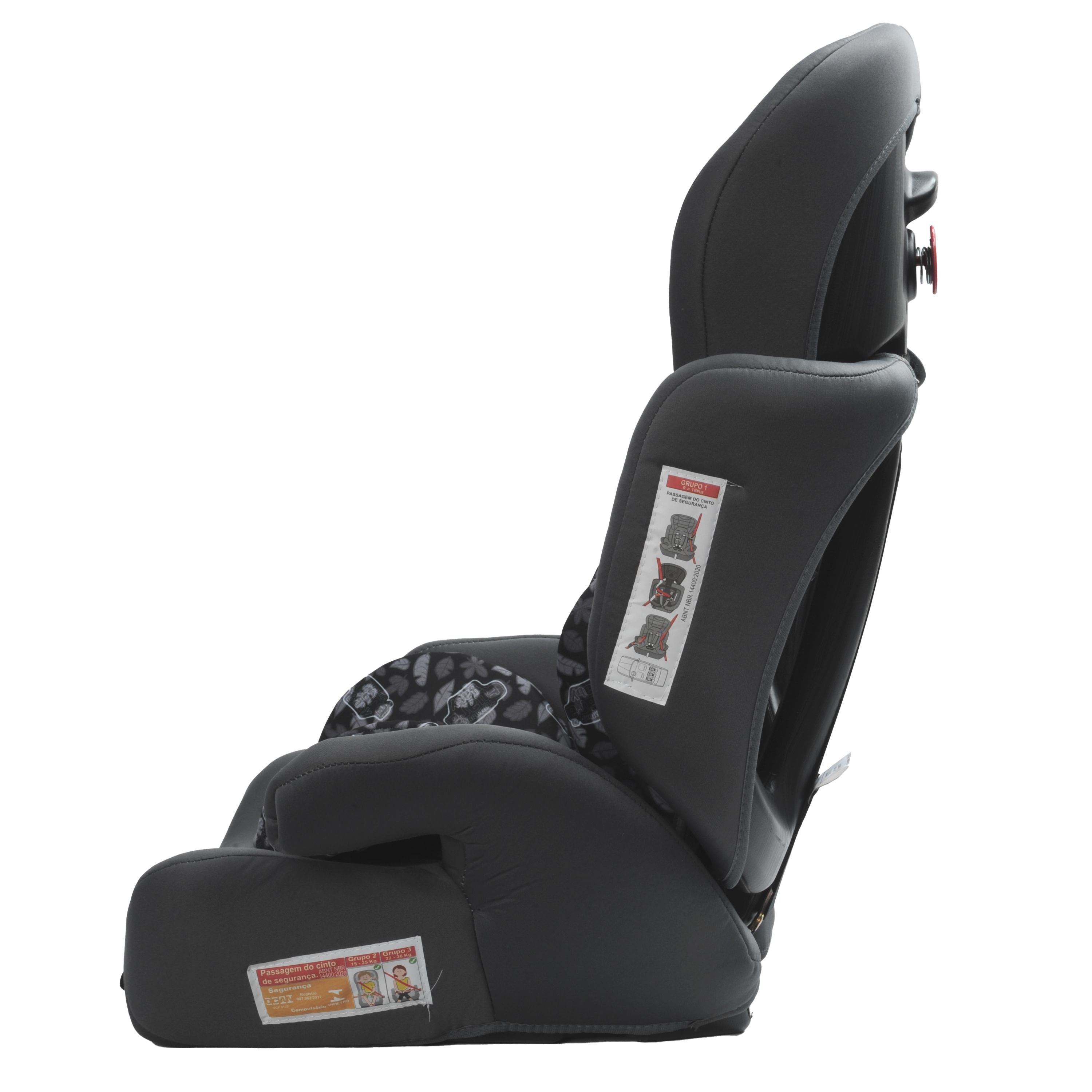 Conta ainda com cinto de segurança de 5 pontos além de protetor de ombros e ajuste de altura no protetor de cabeça, acompanhando todas as fases da criança.