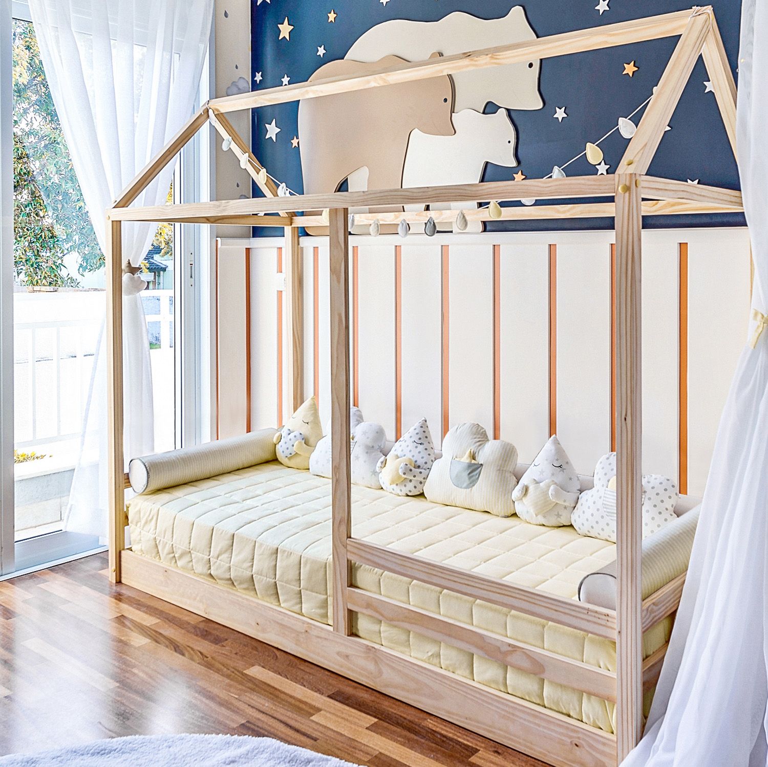 A Cama Casinha Montessoriana Madeira Maciça Solteiro com Grade  é perfeita para as famílias que escolheram a modernidade do estilo montessori, com o colchão próximo ao chão para garantir mais autonomia aos pequeninos. Esse modelo tem as medidas de uma cama de solteiro, garantindo mais espaço para sonecas e brincadeiras.