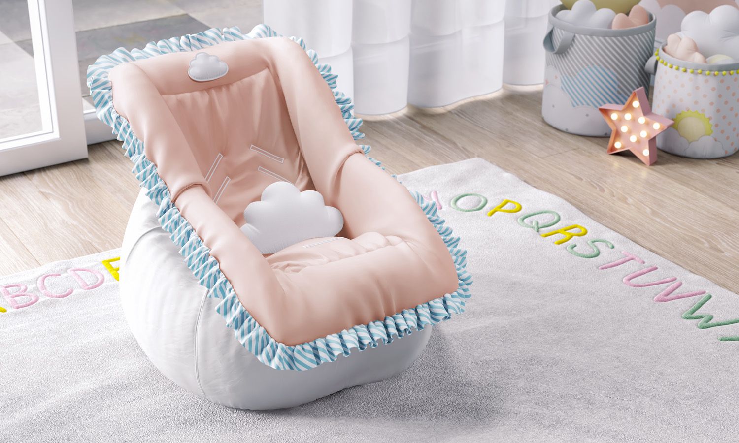 A Capa de Bebê Conforto Nuvem de Algodão preserva o bebê conforto e garante maciez para a pequena ficar bem confortável em viagens e passeios. O acessório conta com tecido 100% algodão, aplicação de nuvem e babados listradinhos.