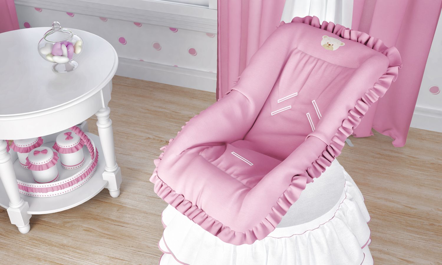 Garantir o bem-estar da pequena nos passeios em famílias é tarefa da Capa de Bebê Conforto Ursinha Bebê! Seu tecido de algodão e o leve enchimento oferecem o melhor conforto durante as viagens de carro e preservam o estofado da cadeirinha. Num suave tom de rosa, esse modelo conta com o bordado exclusivo de uma simpática ursa e românticos babados em volta do acessório.