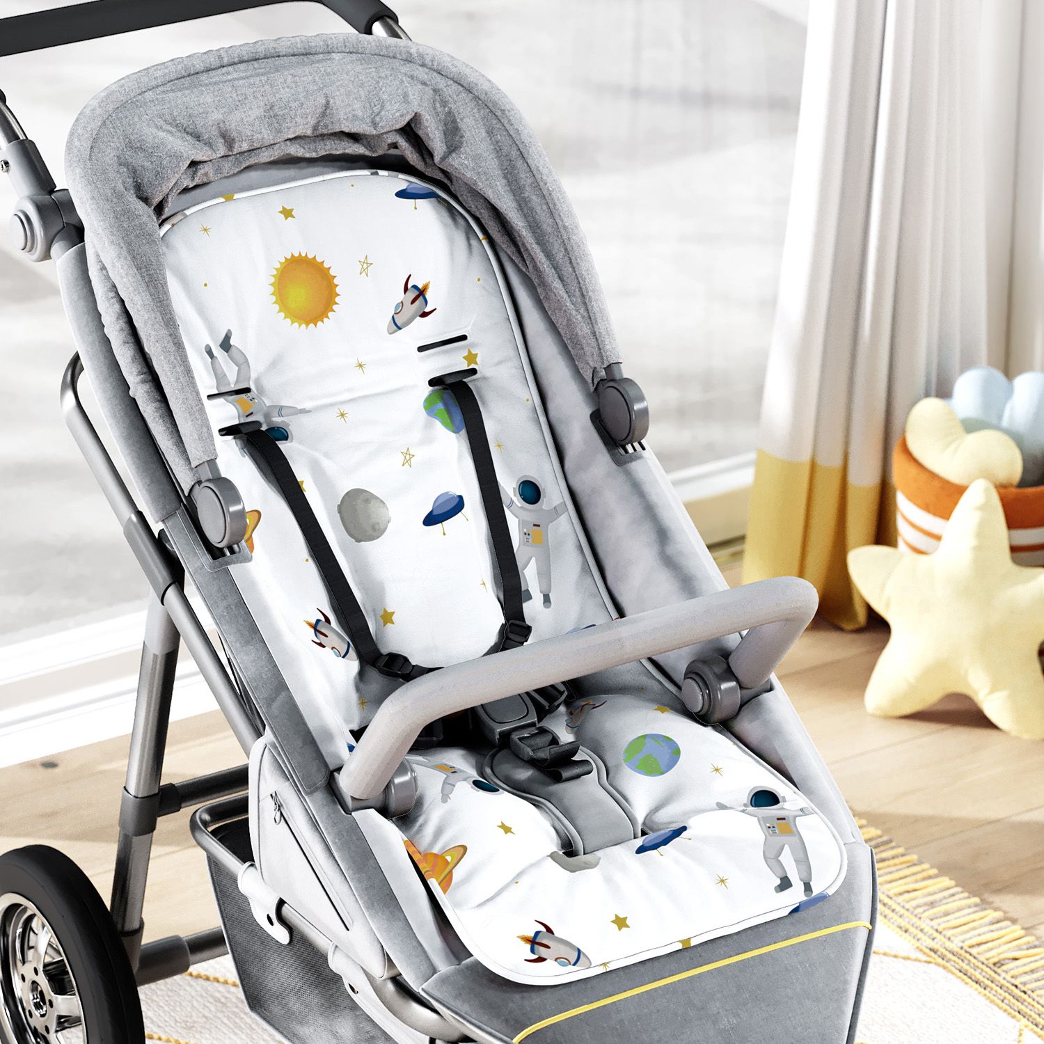 Capa de Carrinho com Protetor de Cinto Astronautas