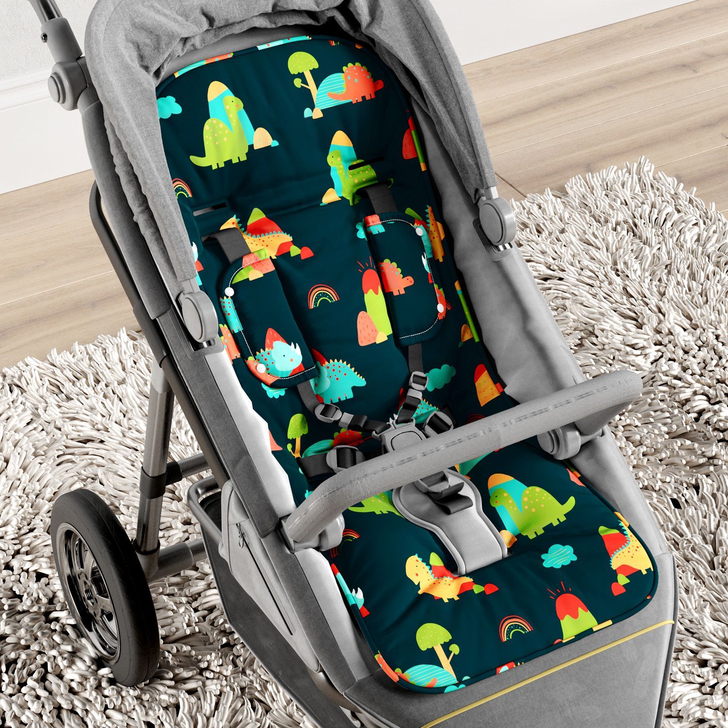 Capa de Carrinho com Protetor de Cinto Dinossauros Coloridos Azul Marinho