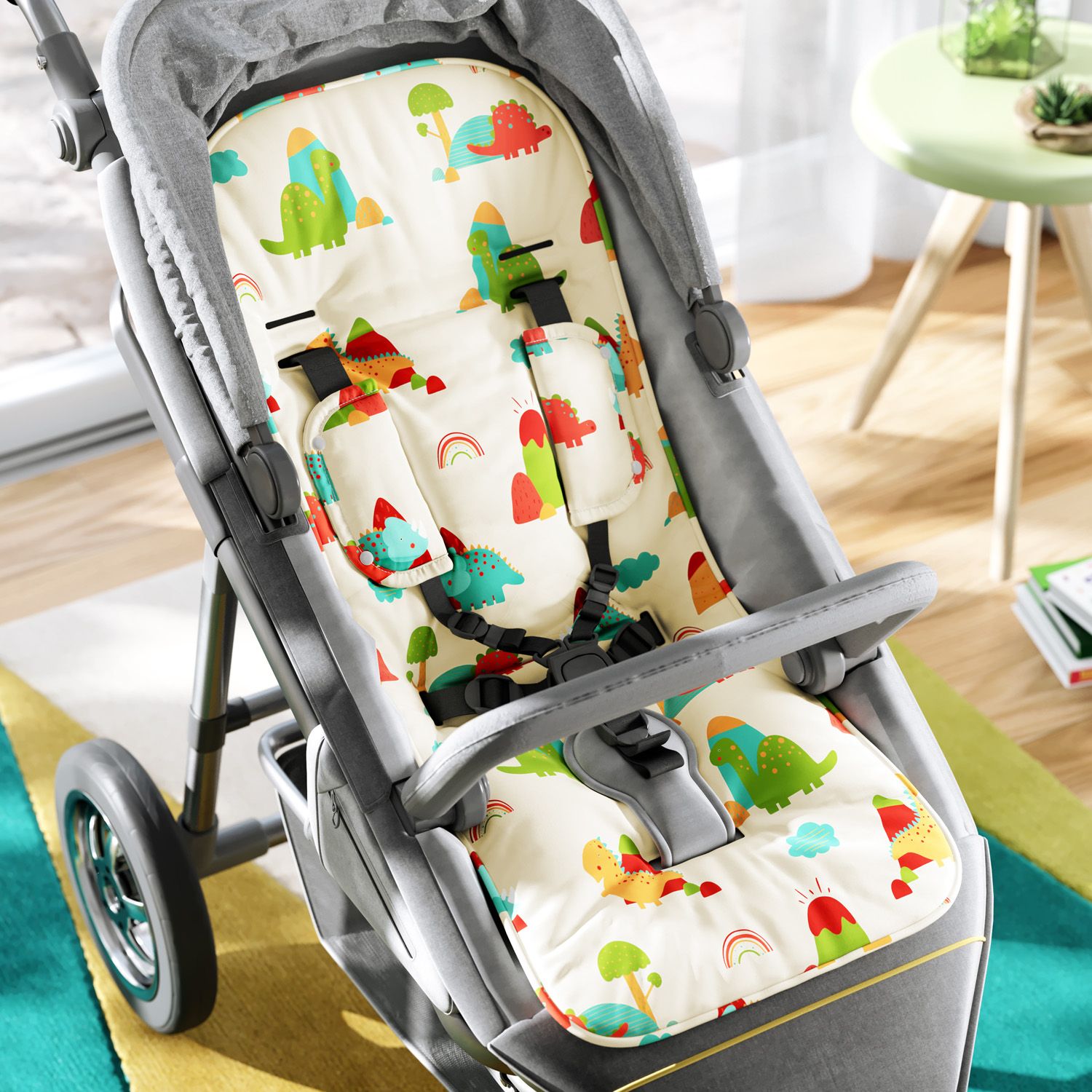 Capa de Carrinho com Protetor de Cinto Dinossauros Coloridos