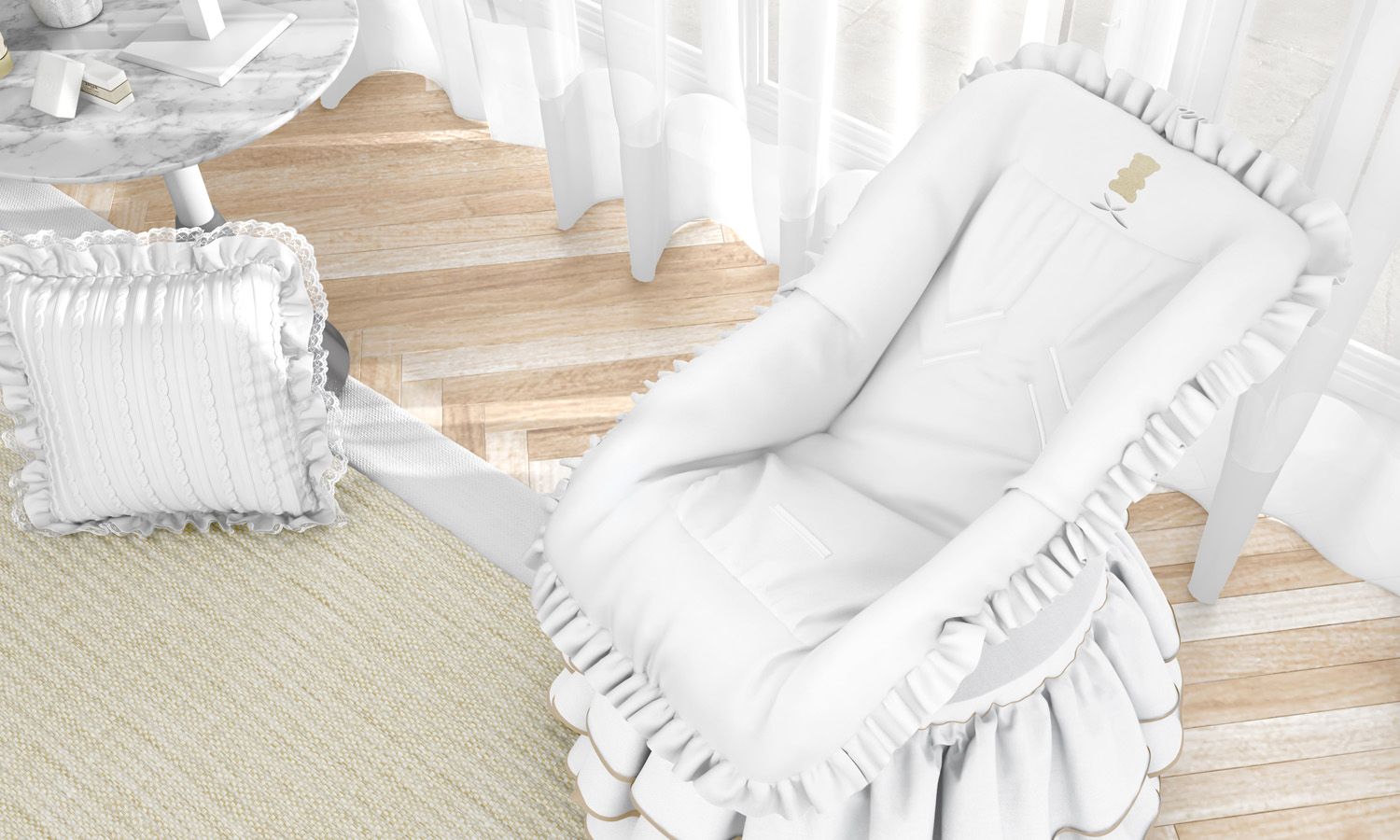 A Capa para Bebê Conforto Urso Luxo Branco é o toque ideal de funcionalidade e sofisticação para os passeios e viagens. Esse acessório preserva o bebê conforto e o tecido 100% algodão garante maciez. Já o babado e o bordado de ursinho tornam essa capa ainda mais delicada.