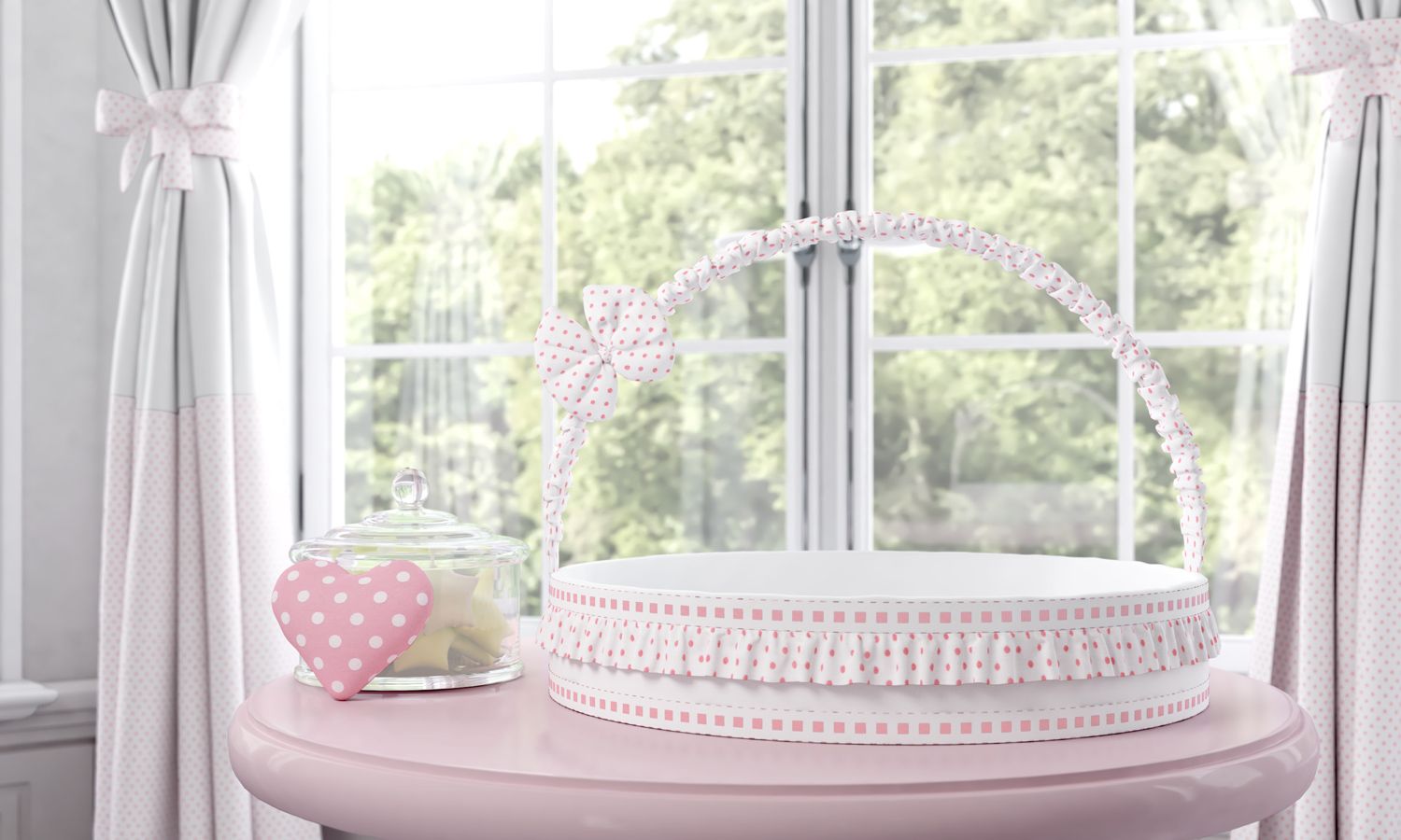 Prático e glamouroso, esse acessório cheio de graça está entre os preferidos das mamães! O design vintage da Cesta Nina Luxuosa é composto por babados, drapeados, um singelo lacinho e passa fita, tudo numa estampa poá e tons de rosa que agregam à decoração do quarto de bebê com um estilo romântico e apaixonante. Aposte no seu bom gosto e aproveite a cestinha para guardar brinquedinhos, fotografias e mimos!
