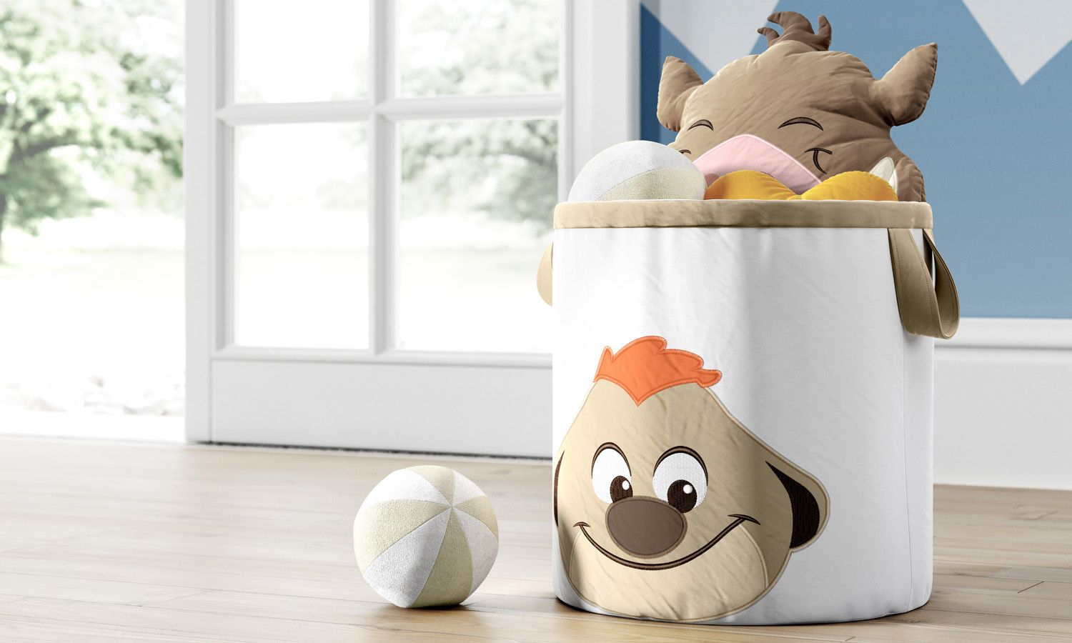 Com o Cesto Organizador para Brinquedos Amiguinho Timão O Rei Leão, a hora de brincar e de guardar os brinquedos vai ficar muito mais divertida! Esse acessório exclusivo Grão de Gente é feito com tecido forrado, possui alças para facilitar o transporte e traz um lindo bordado do suricato Timão, o amigo inseparável do javali Pumba, no clássico da Disney O Rei Leão.