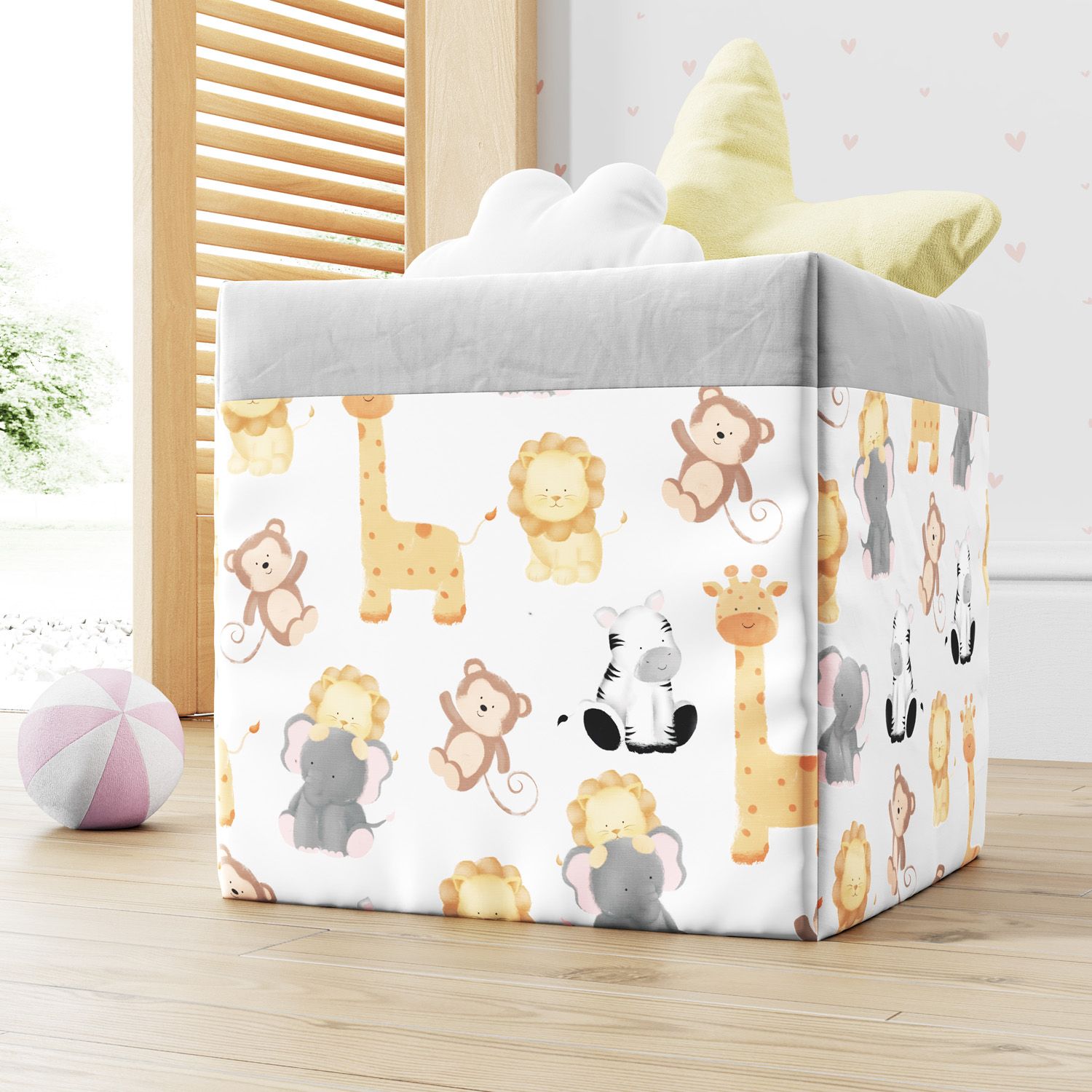 Cesto Organizador para Brinquedos Bichinhos Safári Aquarela 33cm