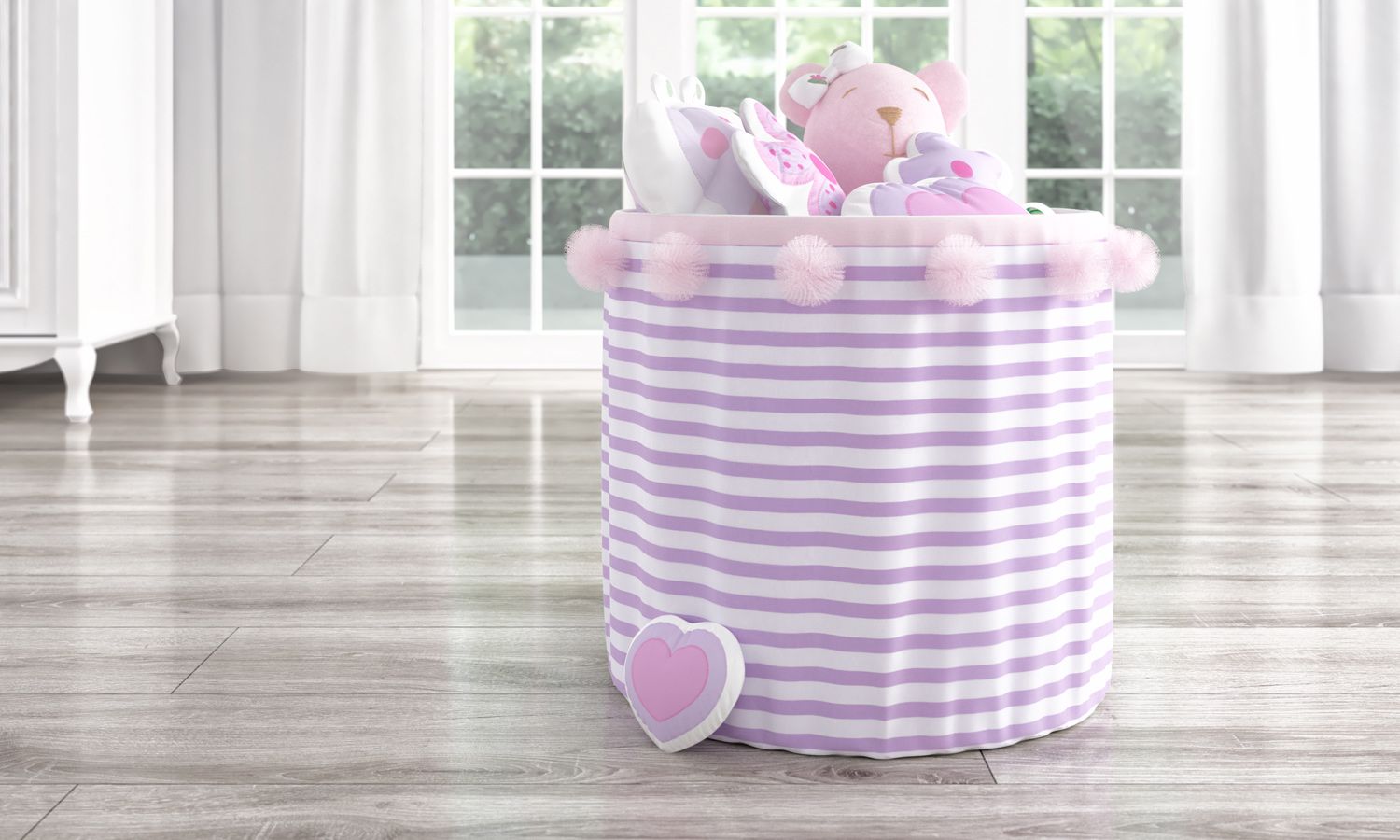 Organizar os brinquedos da sua princesa vai se tornar uma tarefa muito fácil com o Cesto Organizador para Brinquedos Floral Monet 42cm. Sua multifuncionalidade é muito importante, já que é espaçoso, resistente e ideal para guardar muitos brinquedinhos ou até mesmo outros pertences do seu amor. Outro destaque são as listras delicadas nas cores branco e lilás, além dos pompons que apaixonam a todos!