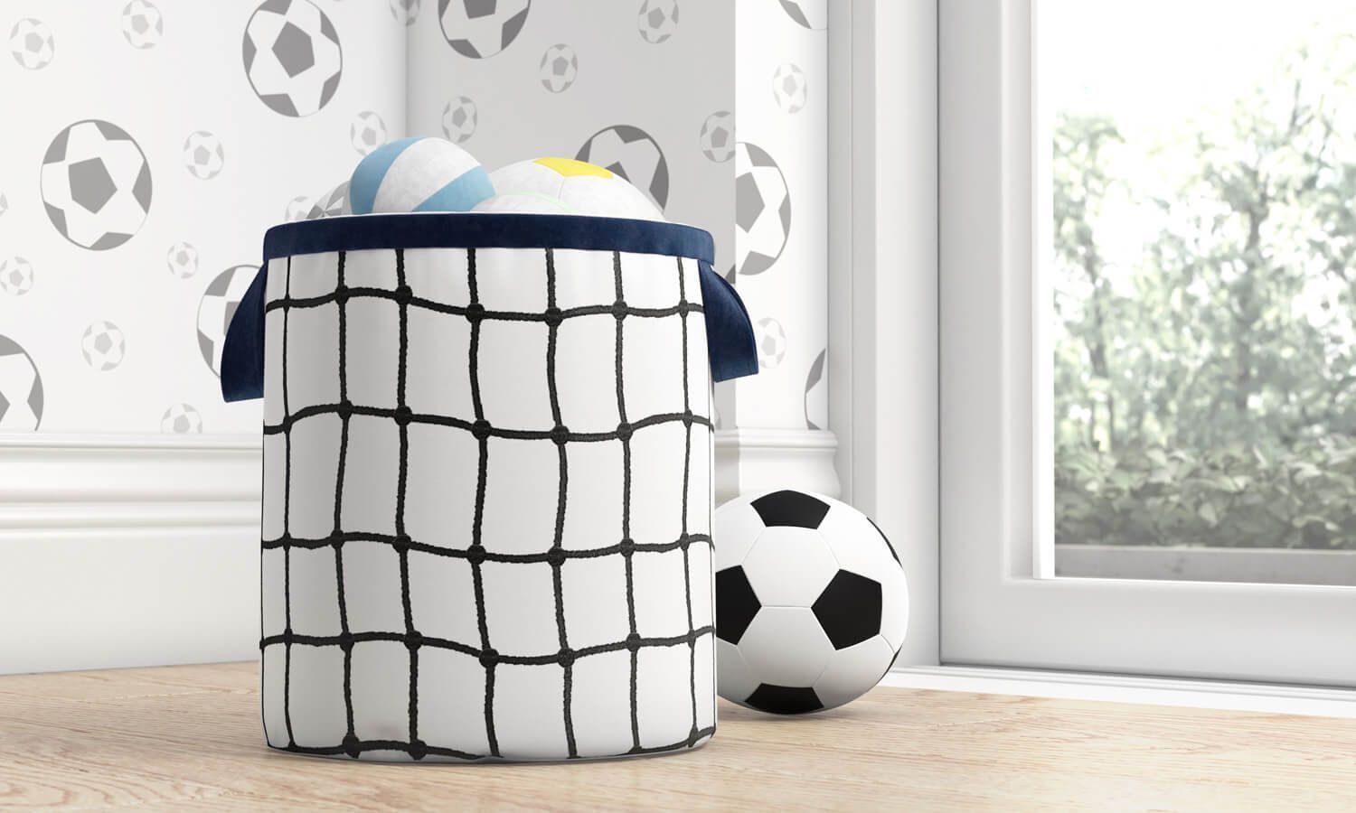 Na Coleção Futebol não tem espaço para gol contra! O Cesto Organizador para Brinquedos Gol 28cm é mais um acerto para o quarto infantil dos sonhos. Indicado para quem busca mais acessórios que contribuam para a organização do ambiente depois da divertida hora de brincar. Seu design possui bordado de rede do gol, perfeito para quem deseja marcar um golaço na organização e também no décor do ambiente.