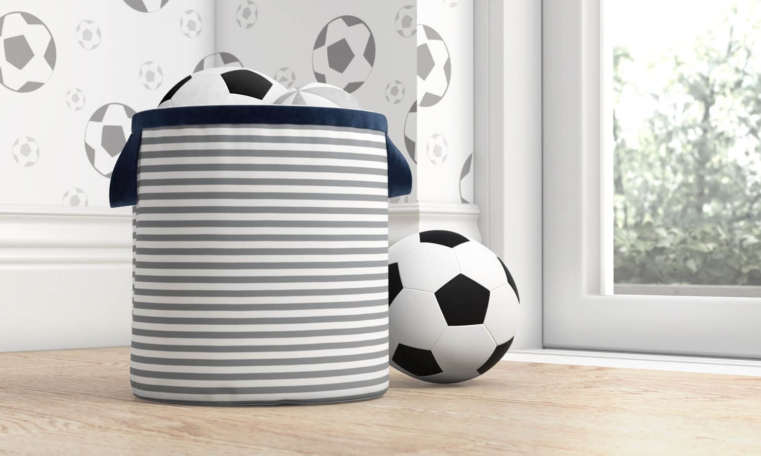 Listras que harmonizam com o décor e muita organização para o quarto infantil! O Cesto Organizador para Brinquedos Listrado 24cm permite que os brinquedos fiquem organizados no ambiente depois da alegre hora de brincar. Seu design possui listras e as cores azul marinho e branco, perfeito para quem deseja marcar um golaço na organização e também no décor do ambiente.