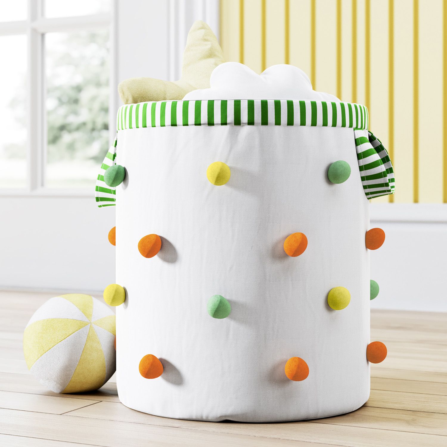 Cesto Organizador para Brinquedos Pompons e Listras Amarelo, Verde e Laranja 24cm