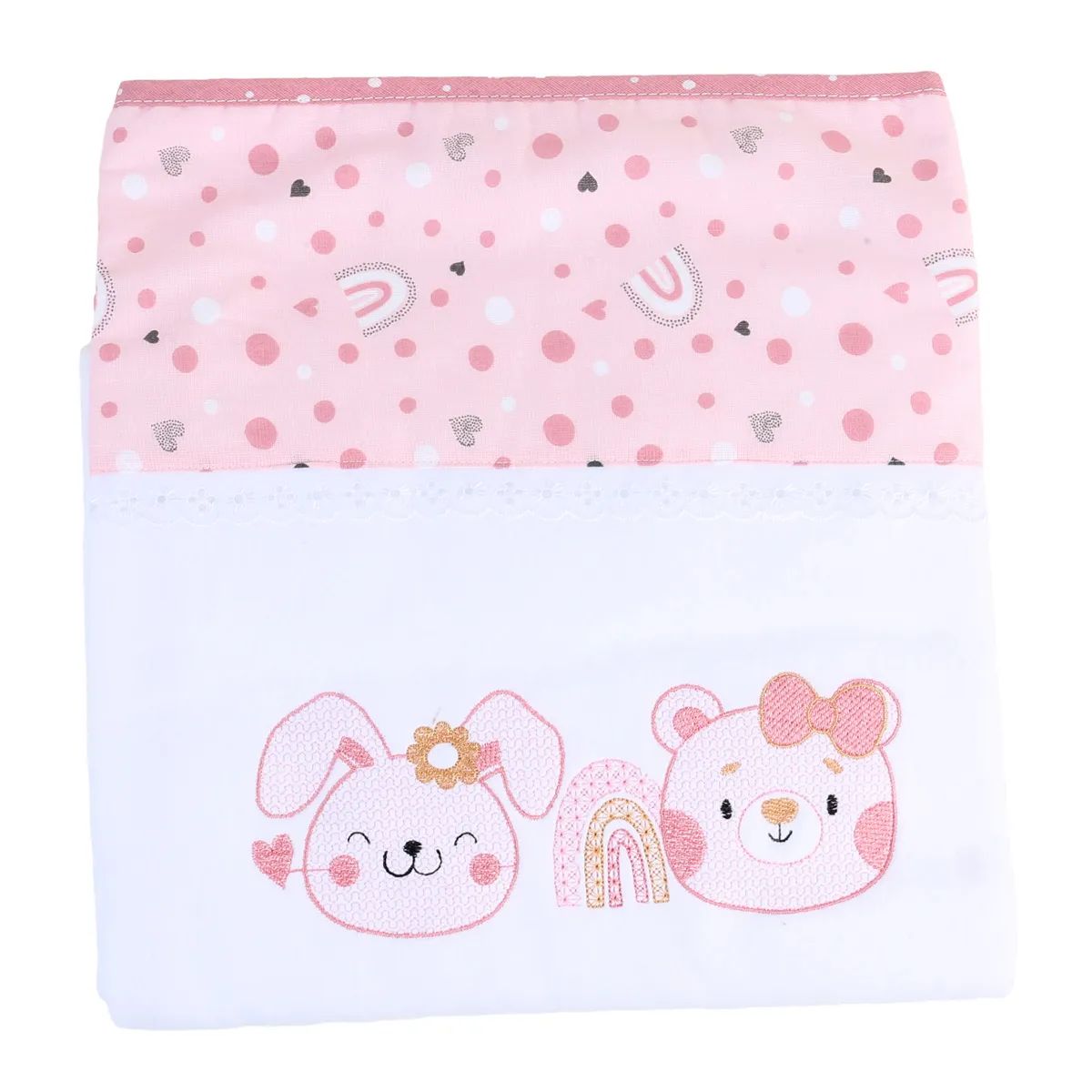 Cobertor Coelhinha e Ursinha Bordada Rosa