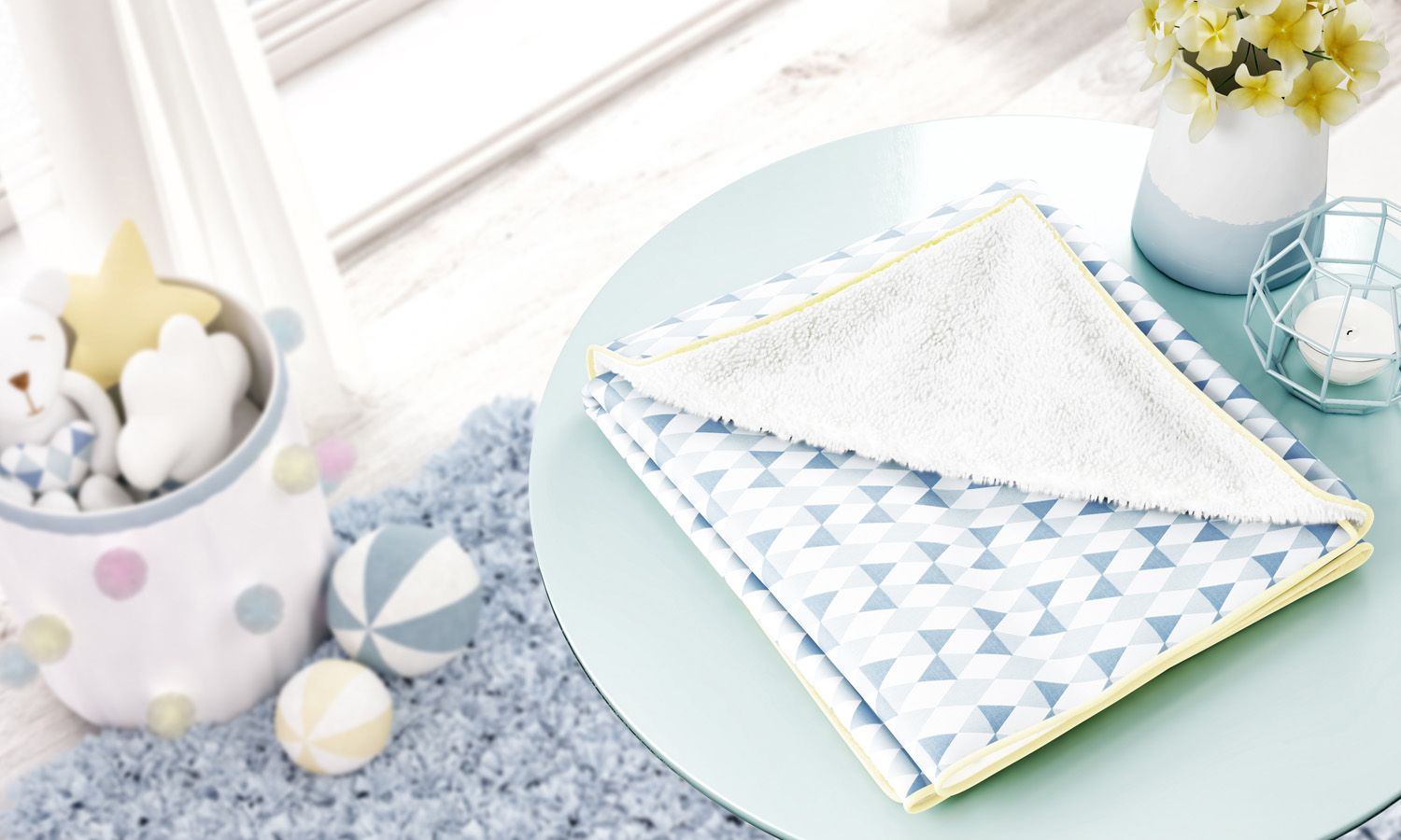 Manter seu neném bem aquecido é um dos cuidados que as mamães e papais tem com o seu amor. Por isso, a Grão de Gente apresenta o Cobertor Soft Amiguinhos Unicórnio, uma excelente escolha para você que não abre mão de um cobertor confortável e charmoso. O tecido 100% algodão é garantia de aconchego e bem-estar. Fofinho, o tecido sutille é garantia de aconchego para o bebê. Já a estampa triangular e as cores azul e amarelo seguem o bom gosto dessa coleção encantadora.