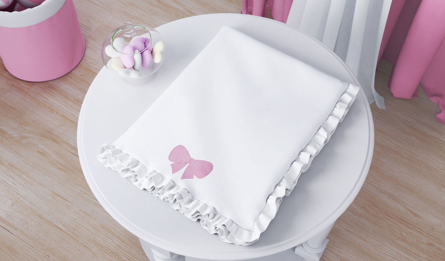 Preocupados com o bem-estar da sua princesa criamos essa belíssima Manta! Indicado para bebês, o tecido soft aquece a recém-nascida no mais rigoroso inverno e enrola a pequena no mais confortável item de enxoval. O exclusivo bordado de laço rosa, mais os babados, arranca suspiros e mantém o charme que as mamães de menina sonham!