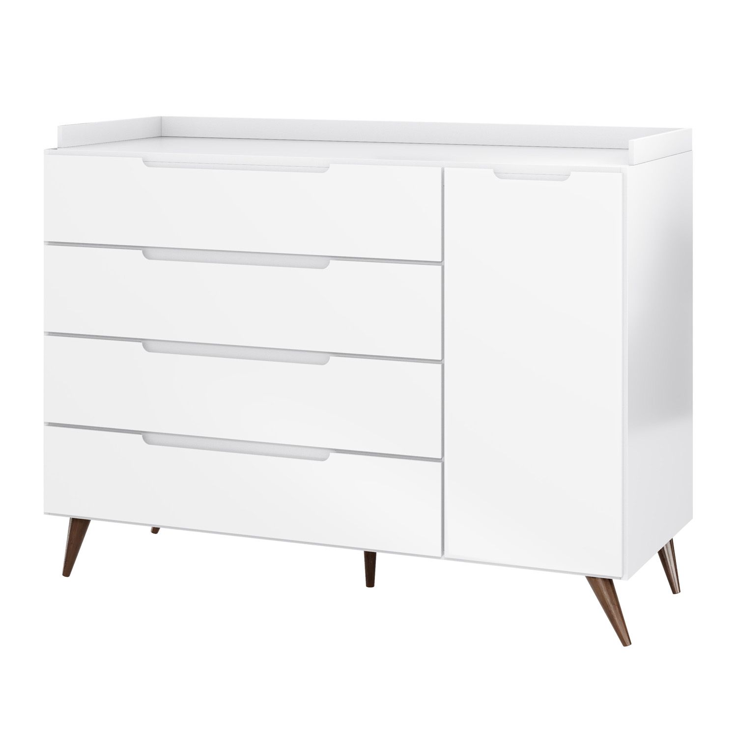 A Cômoda Infantil Branco com Porta Capri é a cômoda dos sonhos para famílias que buscam beleza, praticidade e o melhor custo-benefício! A peça otimiza espaço e torna a rotina mais funcional, armazenando roupinhas e pertences do bebê, enquanto a superfície ampla com protetor de tampo serve para apoiar o trocador de fraldas.
