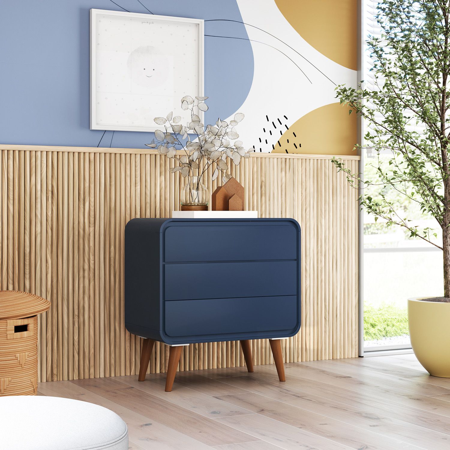 Com referências do estilo retrô, a Cômoda Infantil Branco Confort traz um design lúdico e seguro para o quarto de bebê. Um móvel com traços curvilíneos e pés palito em madeira maciça que trazem uma proposta moderna para a decoração. O gaveteiro conta com um visual impecável e três gavetas para guardar as roupinhas e auxiliar na organização do ambiente. Confira todos os detalhes: