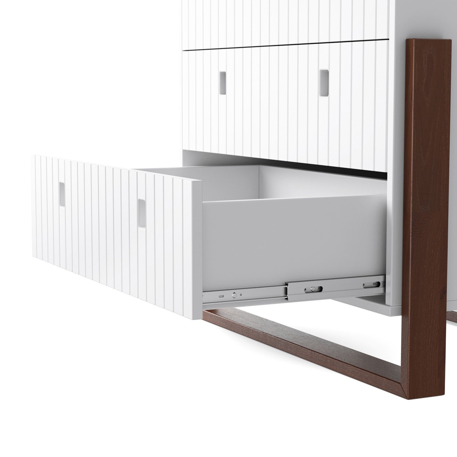 • Gavetas espaçosas com corrediças telescópicas, que garantem movimentação fácil e silenciosa
