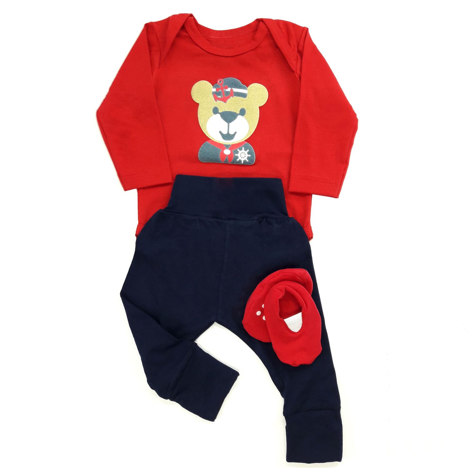 Conjunto de Body Manga Longa, Mijão e Sapatinho Marinheiro Tam G