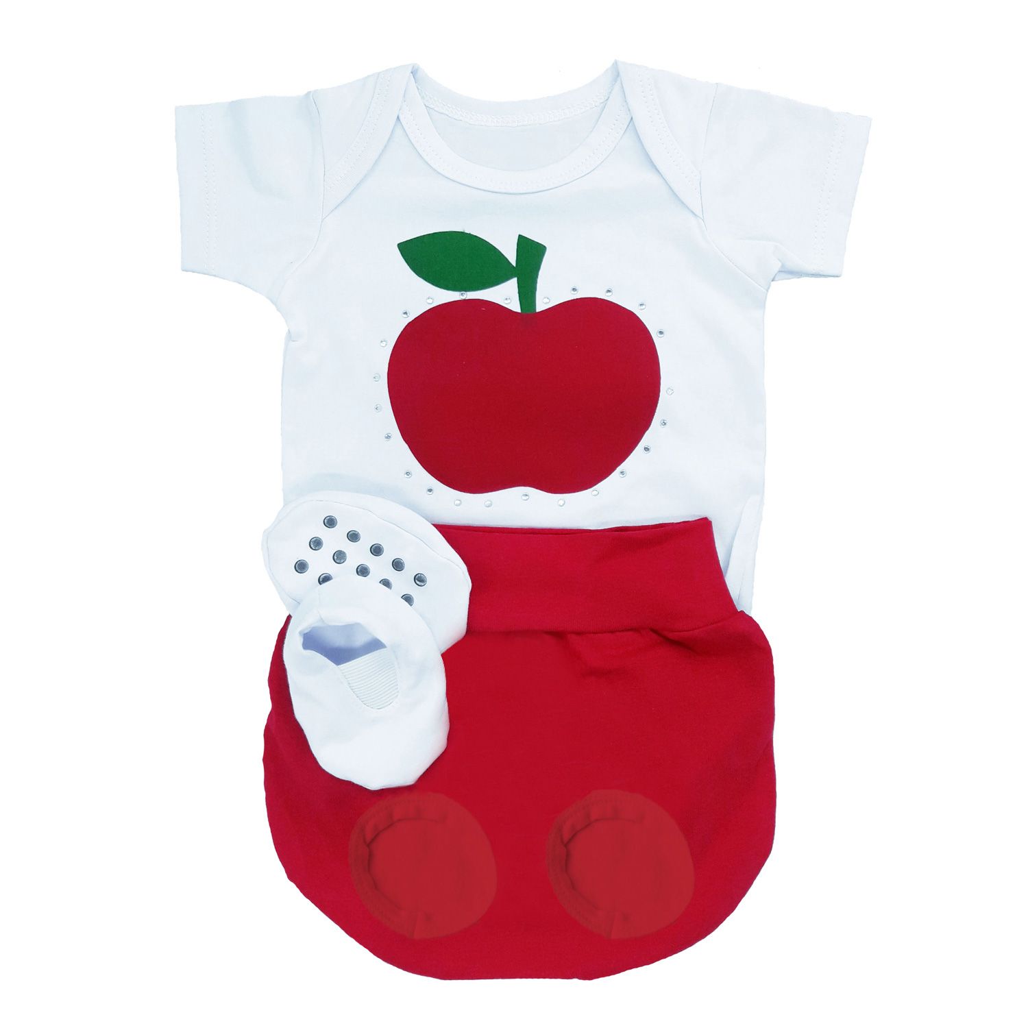 Conjunto de Body, Tapa Fralda e Sapatinho Maça Tam GG