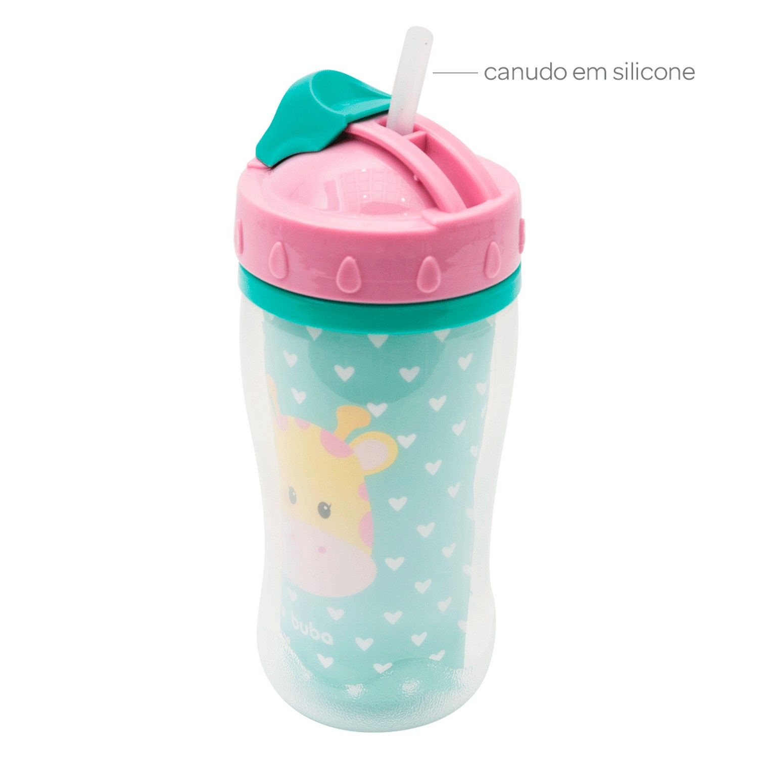 Fácil de manusear, possui tampa com canudo retrátil e acompanha o crescimento da criança em casa, em passeios e viagens. Também é uma ótima opção para presentear!