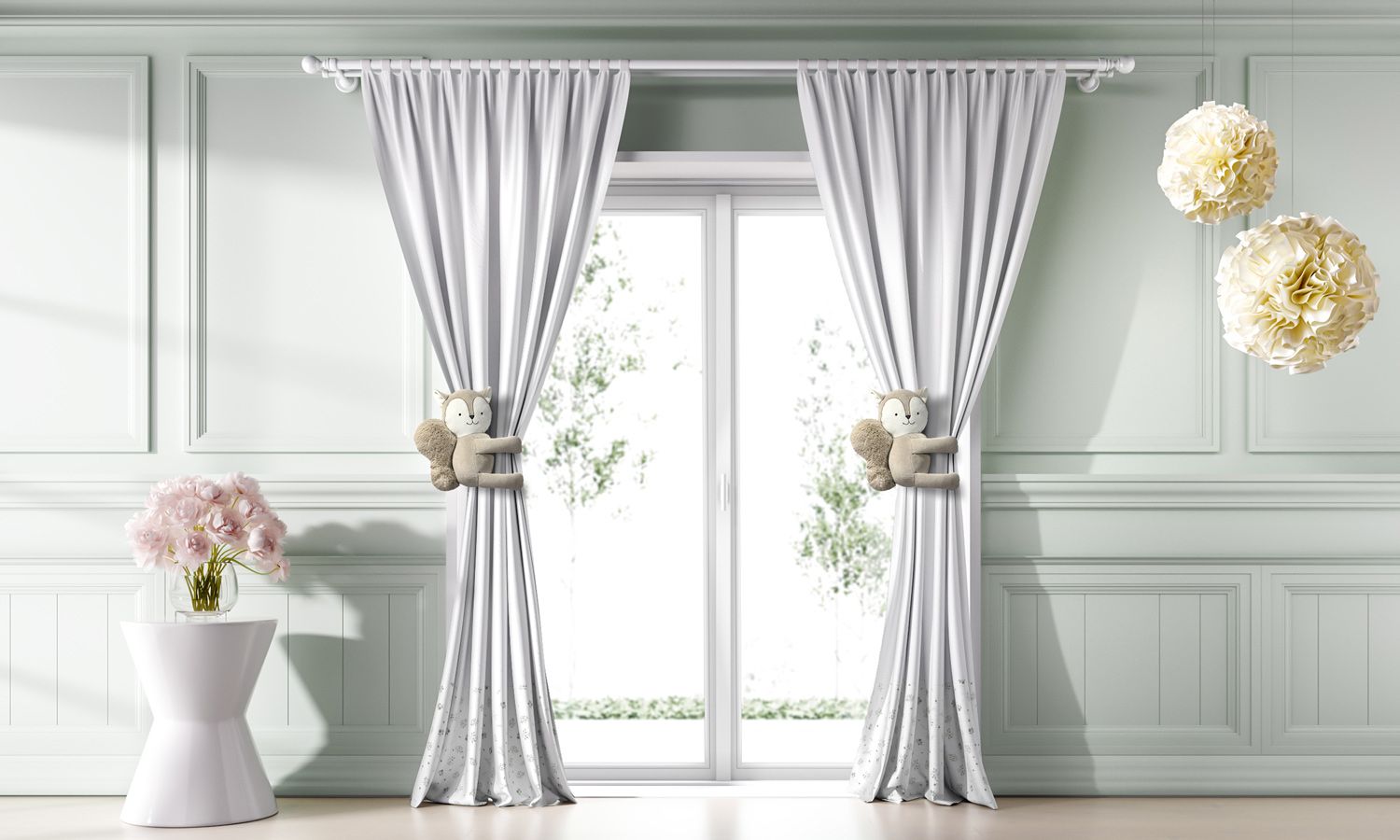 Para completar a decoração do quarto de bebê ou infantil da sua princesinha, aposte na beleza delicada da Cortina Floral Bosque Encantado! Esse modelo é perfeito para ambientes femininos com estilo romântico, provençal ou shabby chic! São dois xales brancos com barrado estampado de flores, que devem ser usados com varão simples de até 2 metros de largura. Para adicionar um toque lúdico e fofinho, conheça também o Prendedor de Cortina Esquilo, vendido separadamente.