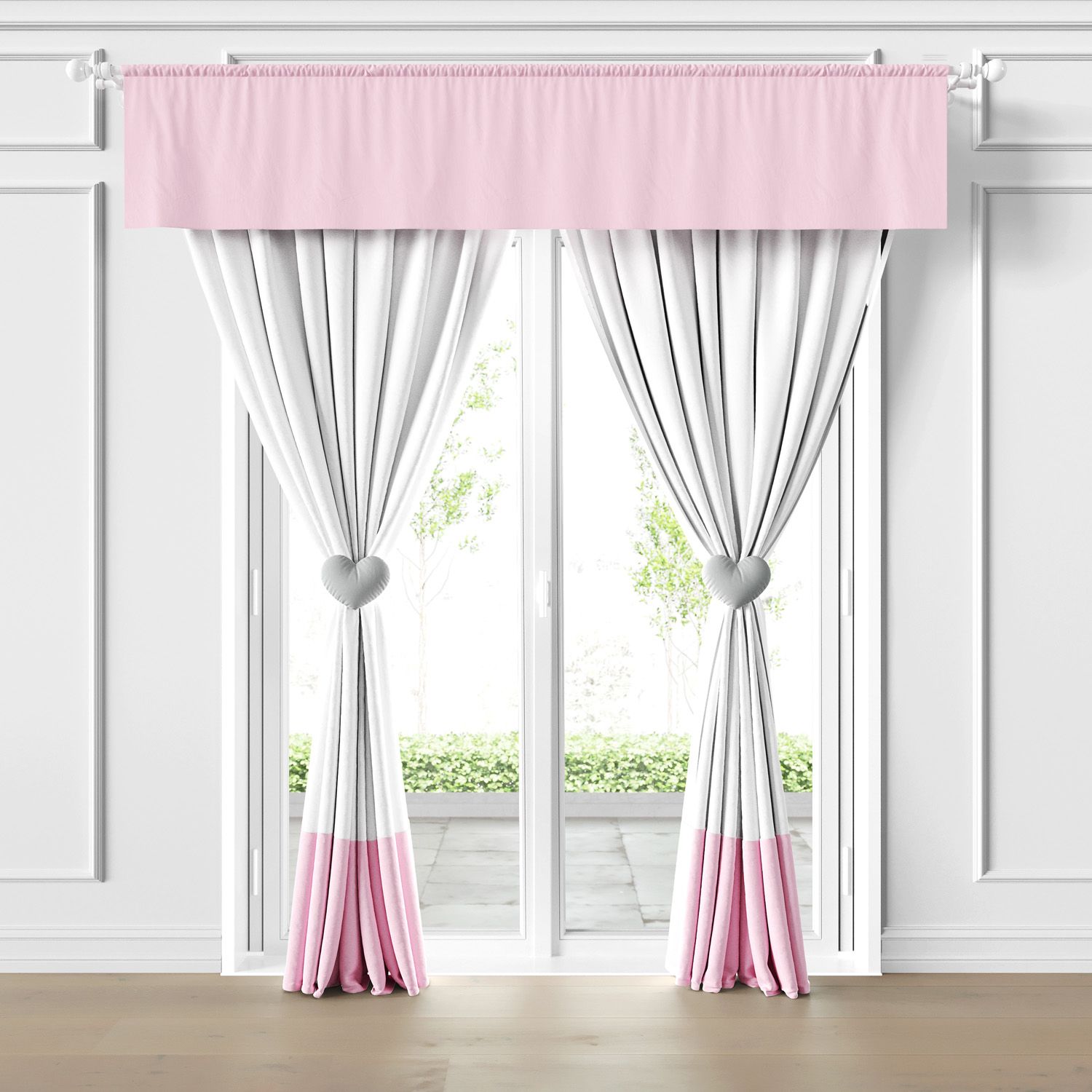 A Cortina Infantil e Bebê Coração Rosa é uma opção versátil para completar a decoração do quarto de bebê ou infantil e controlar a entrada de luz no ambiente na medida certa! O modelo com bandô estampado, dois prendedores e dois xales é indicado para varão duplo e combina com o estilo romântico de decoração