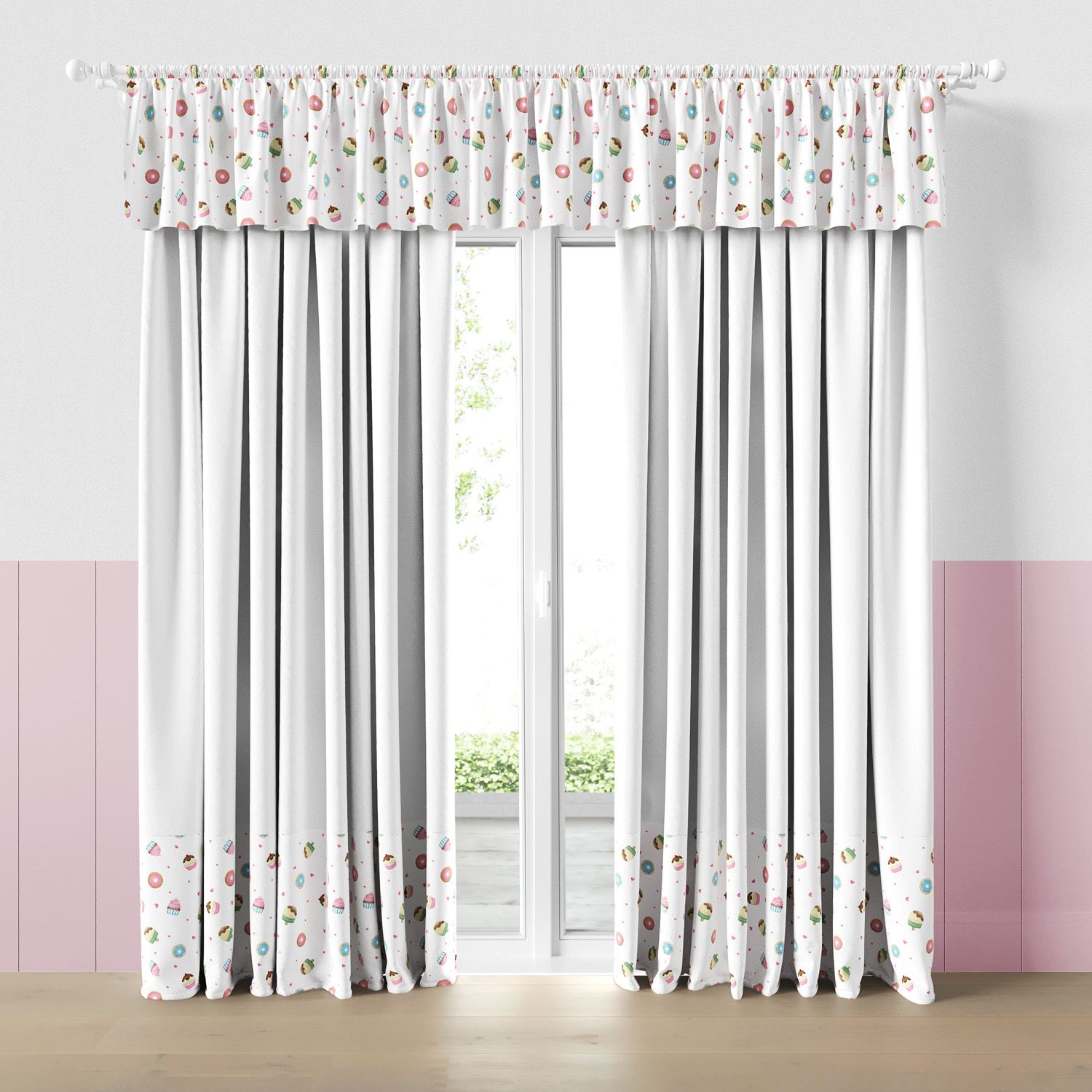 A Cortina Infantil e Bebê Docinho Colorido é uma opção lúdica para completar a decoração do quarto de bebê ou infantil e controlar a entrada de luz no ambiente na medida certa! O modelo com bandô estampado e dois xales é indicado para varão duplo e combina com o estilo divertido na decoração.