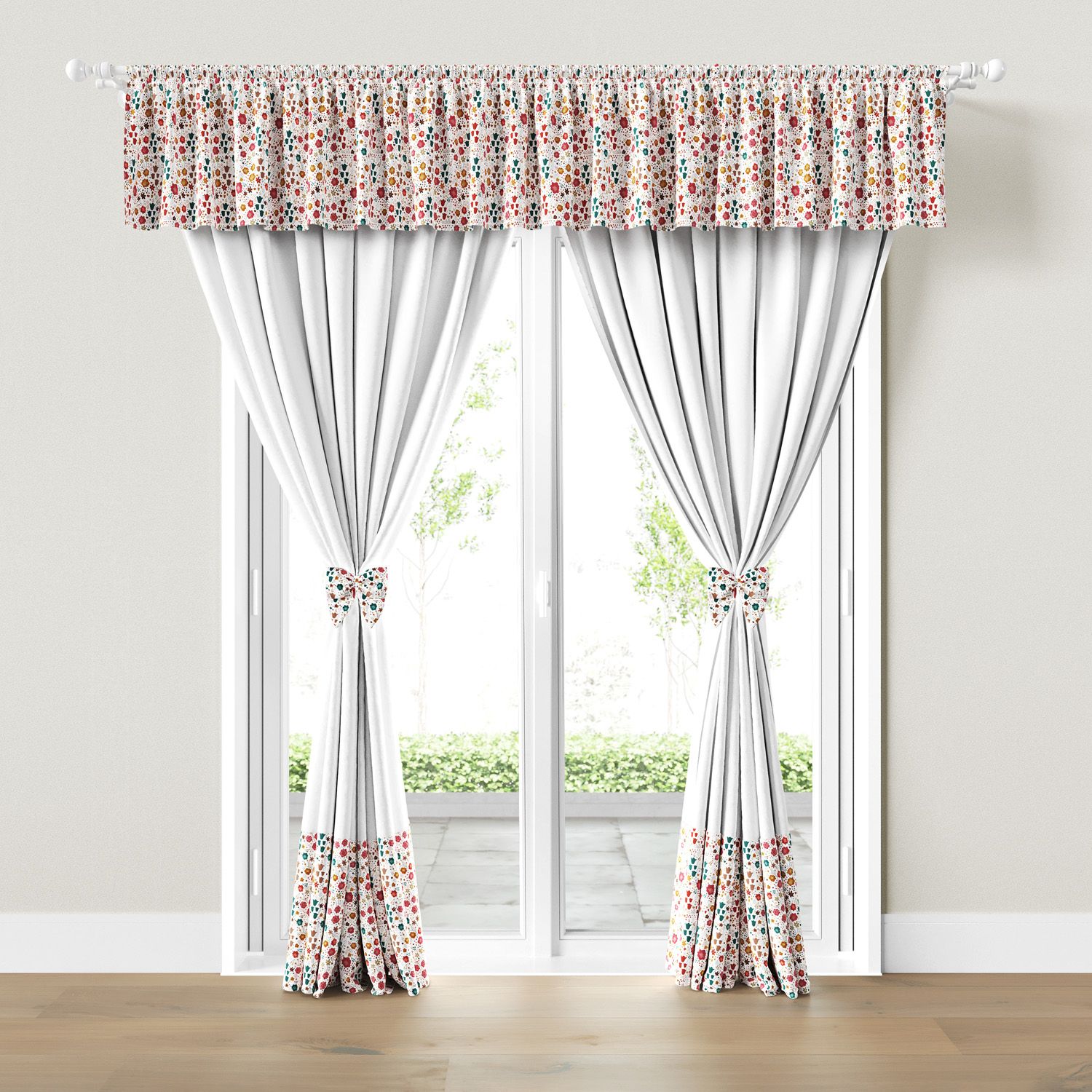 A Cortina Infantil e Bebê Flores é uma opção lúdica para completar a decoração do quarto de bebê ou infantil e controlar a entrada de luz no ambiente na medida certa! O modelo com bandô estampado e dois xales é indicado para varão simples e combina com o estilo romântico na decoração