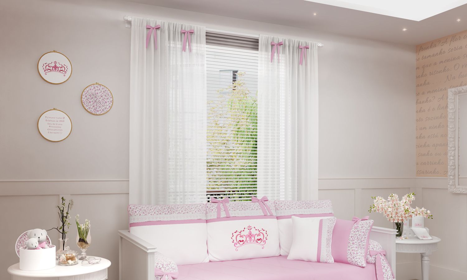A Cortina para Varão da Coleção Minha Princesinha faz parte dos lançamentos exclusivos criados pelos profissionais da Grão de Gente para inspirar as mamães de bom gosto e completar a decoração do quarto de bebê com elegância e delicadeza. São 2 peças de voil branco com graciosos lacinhos cor de rosa, que vão controlar levemente a entrada de luz no ambiente, proporcionando sonecas tranquilas e adicionando aconchego ao quartinho. Esta cortina com 2,00m de largura (no varão) e 1,80 m de altura combina com diversos temas femininos, dos clássicos aos contemporâneos!