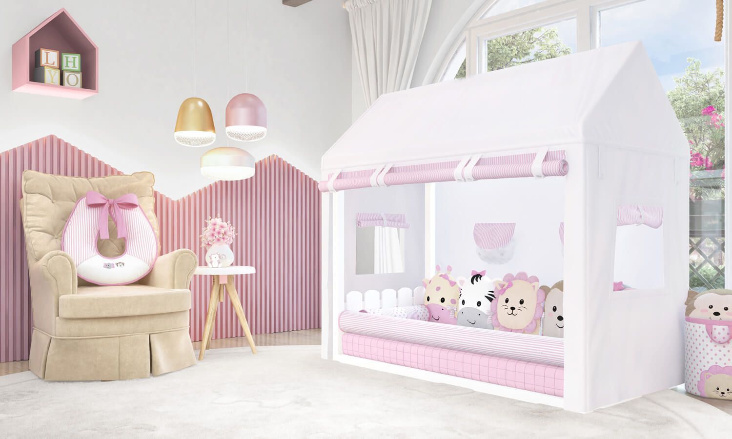 As delicadas listras garantem o charme característico dessa coleção, os pais podem contar divertidas historinhas nessa graciosa cabana, um ótimo passatempo na alegre "hora de brincar". Complemente essa linda cabana com o Kit MontessorianoAmiguinhos Safári e encante a todos com charme e originalidade no quarto de bebê!
