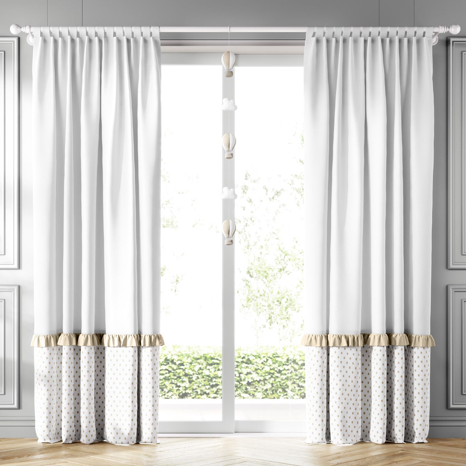 O cantinho do seu amor vai ficar mais fofo e aconchegante com a Cortina Poá Babado Bege. Indicada para varão simples, essa linda cortina tem dois xales que ajudam a controlar a claridade excessiva, protegendo o soninho e a privacidade nos momentos especiais entre mamãe e bebê. Tudo isso com o charme dos babados e poás, que dão um toque de delicadeza ao ambiente.